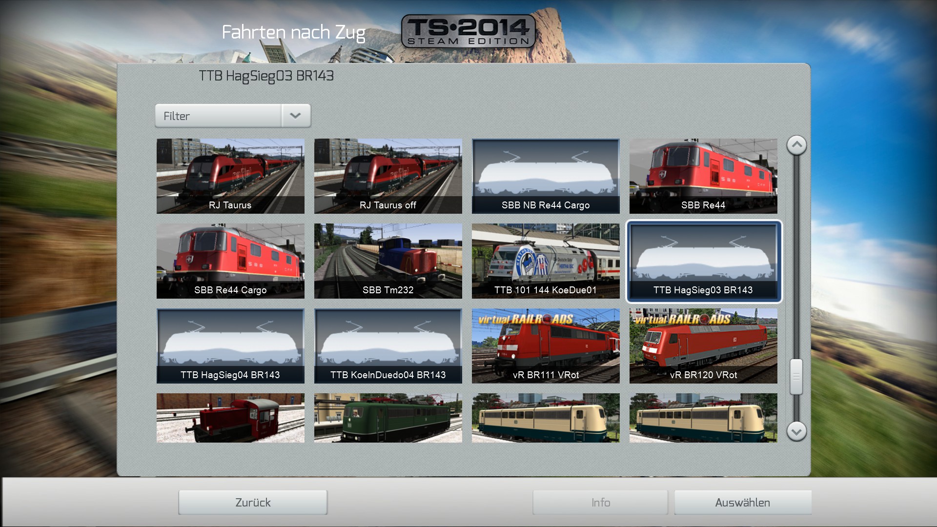 Vom Prinzip her ist es die gleiche Lok, wie die 143 aus Köln-Düsseldorf bzw. Hagen-Siegen, jedoch mit Ansagen im Szenario.Gruß