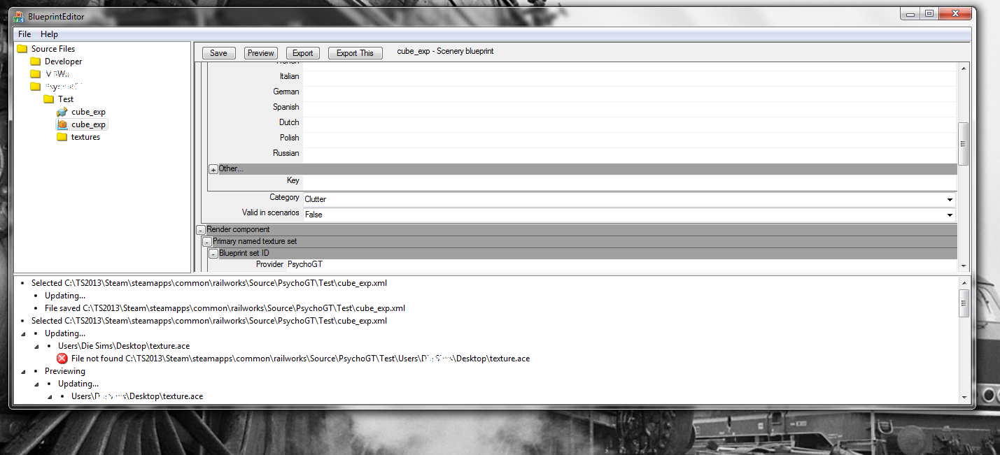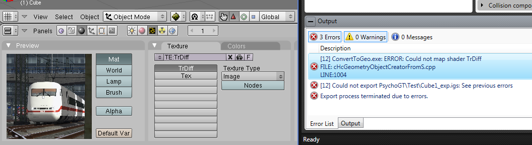 Ich wollte mal einen einfachen Blender-Würfel in Railworks exportieren, nur kommt im Blueprint-Editor folgende Fehlermeldung, wenn ich auf exportieren drücke. Was habe ich falsch gemacht?