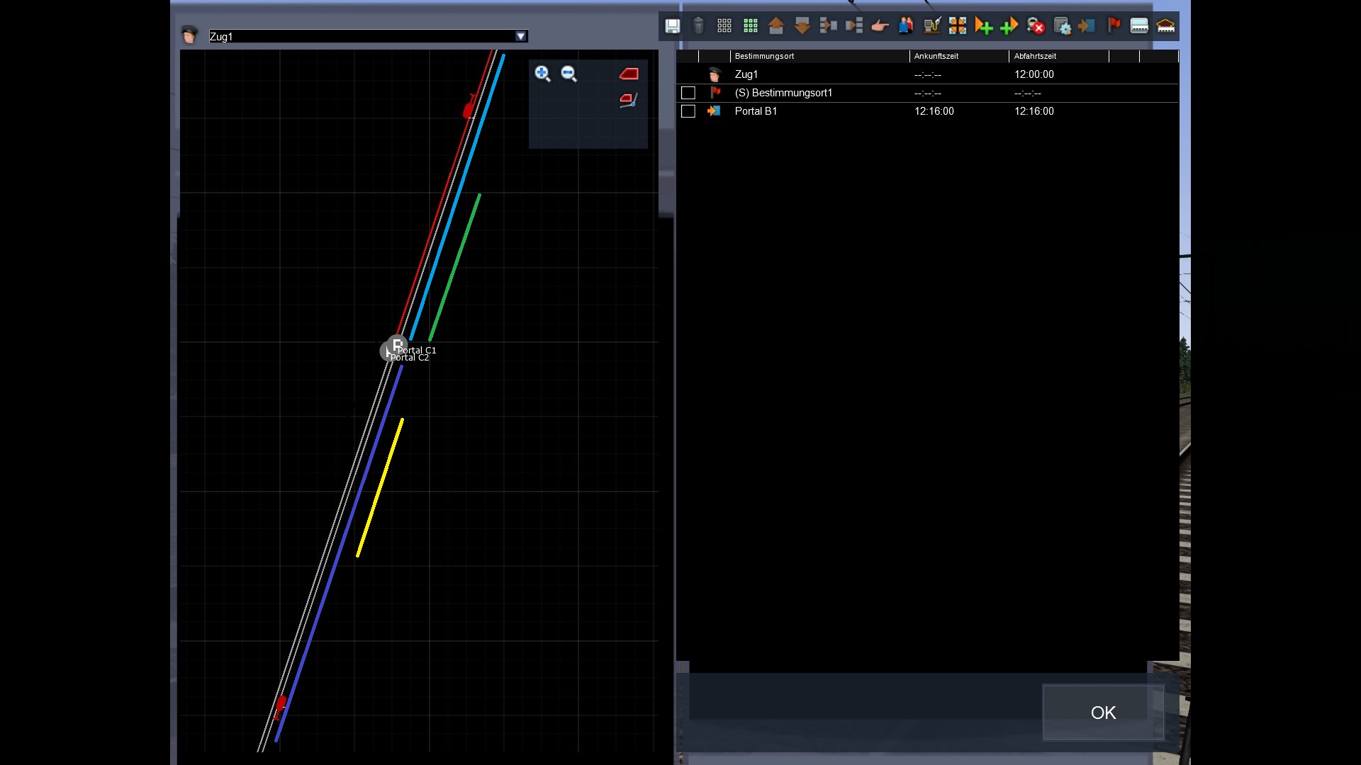Und zwar die KI-Züge, die aus den Portalen rauskommen sollen "Verlassen die Strecke".