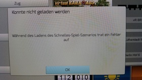 Wenn ich unter „Schnelles Spiel“ dann auf „vR BR 120 VRot Expert Line“ gehe und folgende Zugzusammenstellung wähle „vR BR 120 EL mit 9 InterRegio Wagen“. Kommt nach einer gewissen Ladezeit folge Meldung: