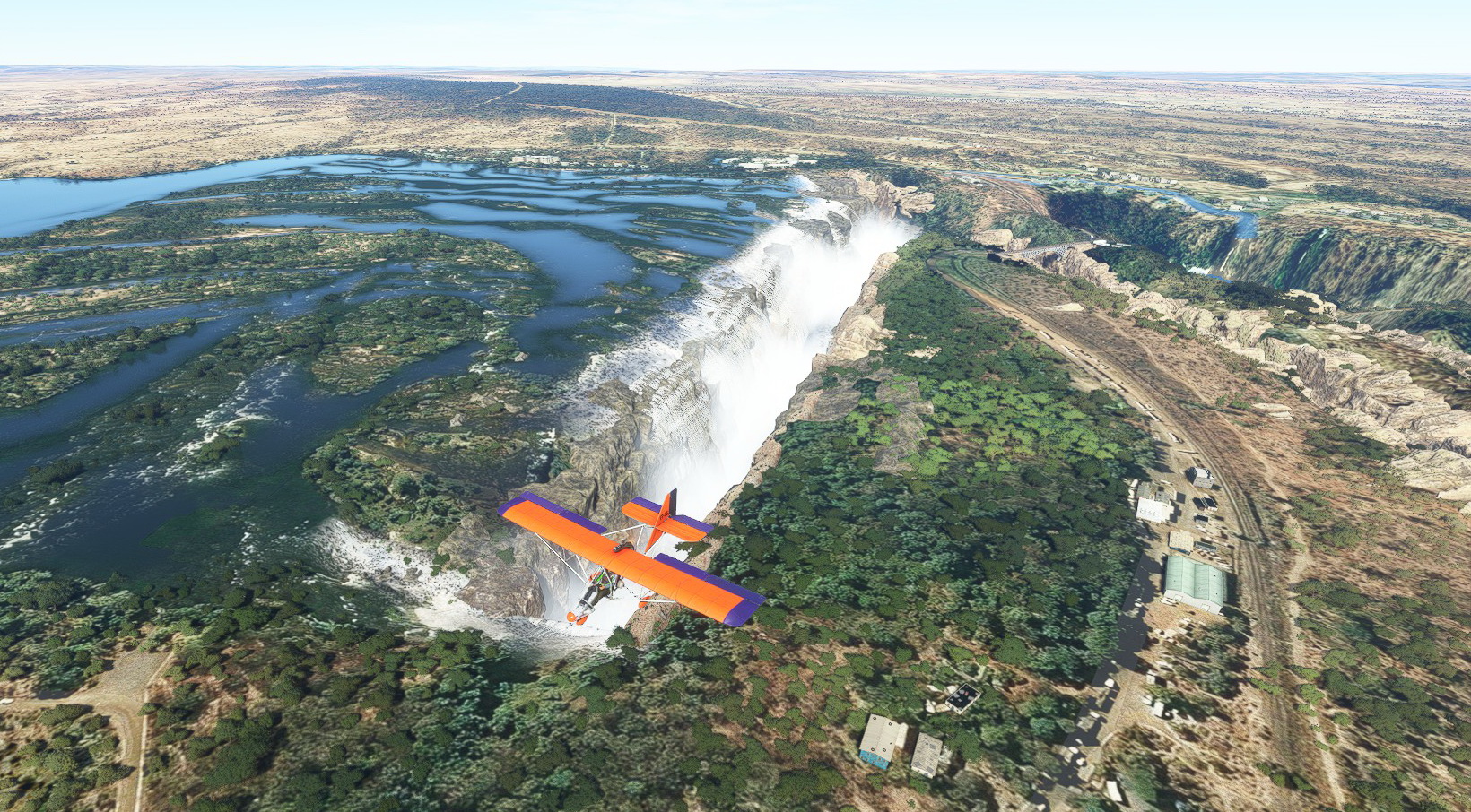 Wer die Victoria-Fälle in Afrika auch im MSFS erleben wollte hatte bisher nicht gerade viel Glück, da die Region ziemlich missraten und flach war. Jetzt aber, dank einer Mod von jeppson2001 ist dies endlich Geschichte