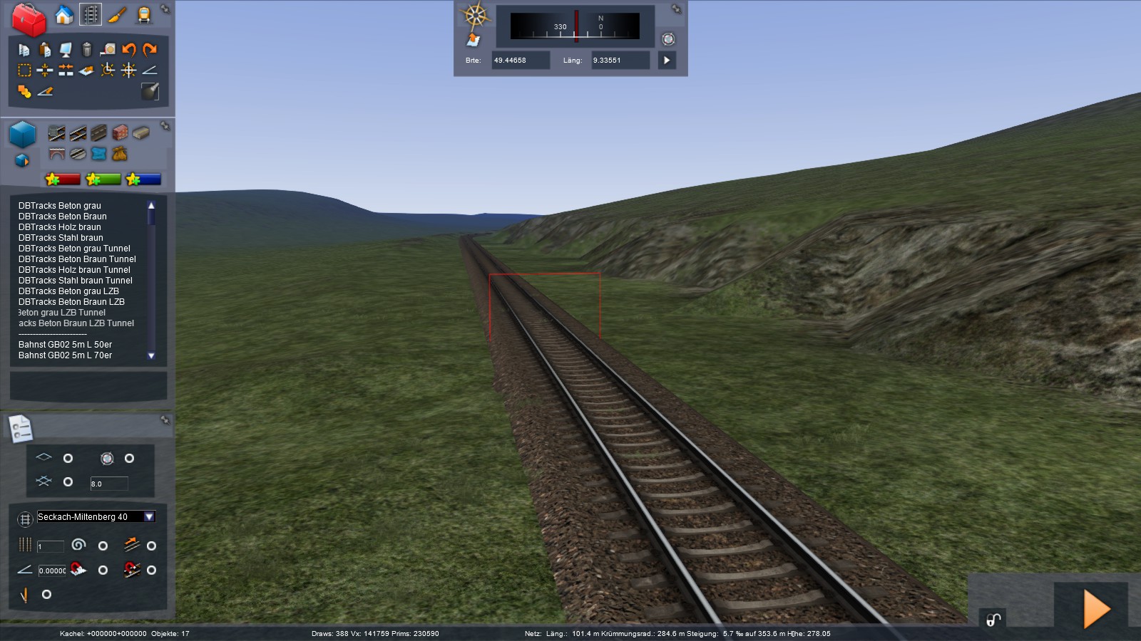 ich habe mal ein bisschen am Felberpass 2 rumgebastelt und dabei (unbemerkt) ein Stückchen Gleis gelöscht. Dieses wollte ich dann ersetzen, aber es lässt sich nur am einen Ende mit dem Bestandsgleis verbinden. Die Höhe habe ich schon angepasst und in einer Kurve liegt das Gleisstück auch nicht.