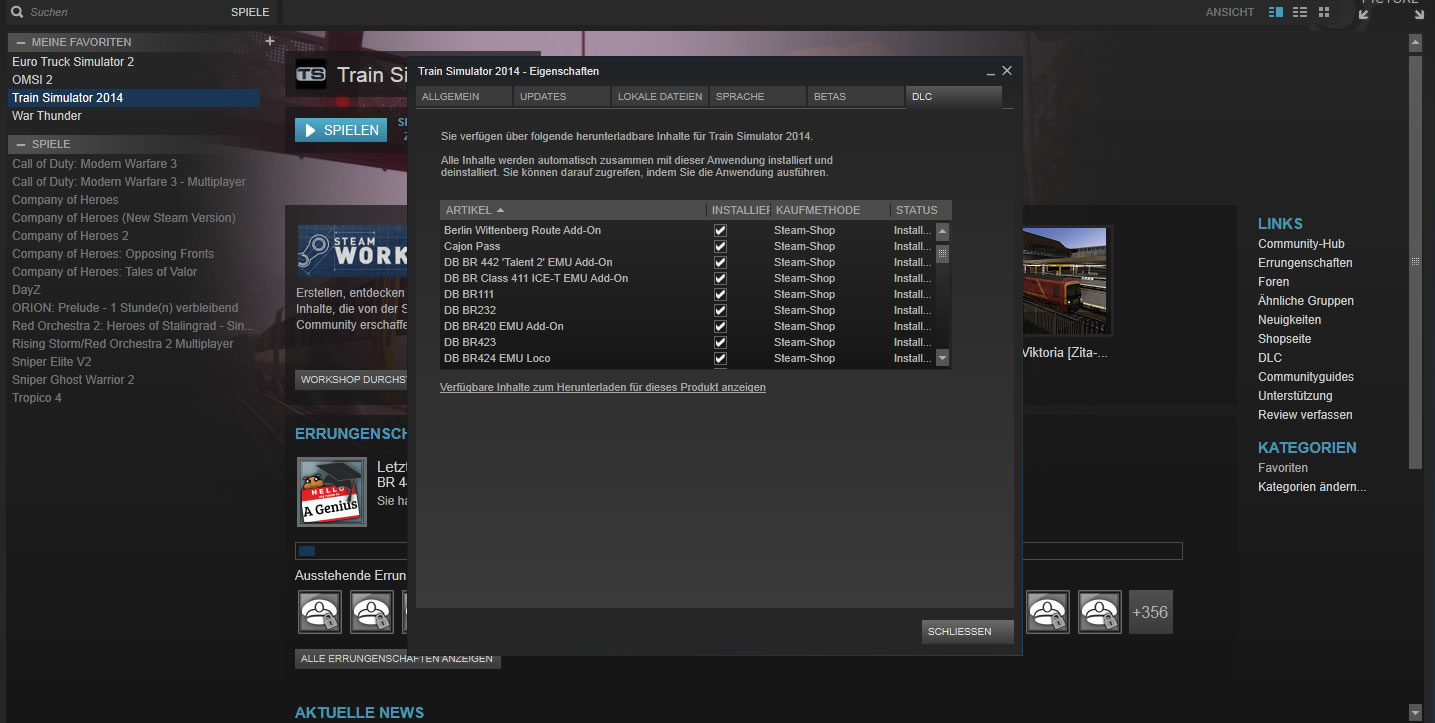 wenn ich z.B. folgende Seite aufrufe: http://store.steampowered.com/app/222601 war dort immer ein grünes Informationsfeld,was mir anzeigte, daß ich dieses Add-on/Rollmaterial installiert habe. Somit wußte ich ja, das Teil muß ich mir nicht mehr zulegen.