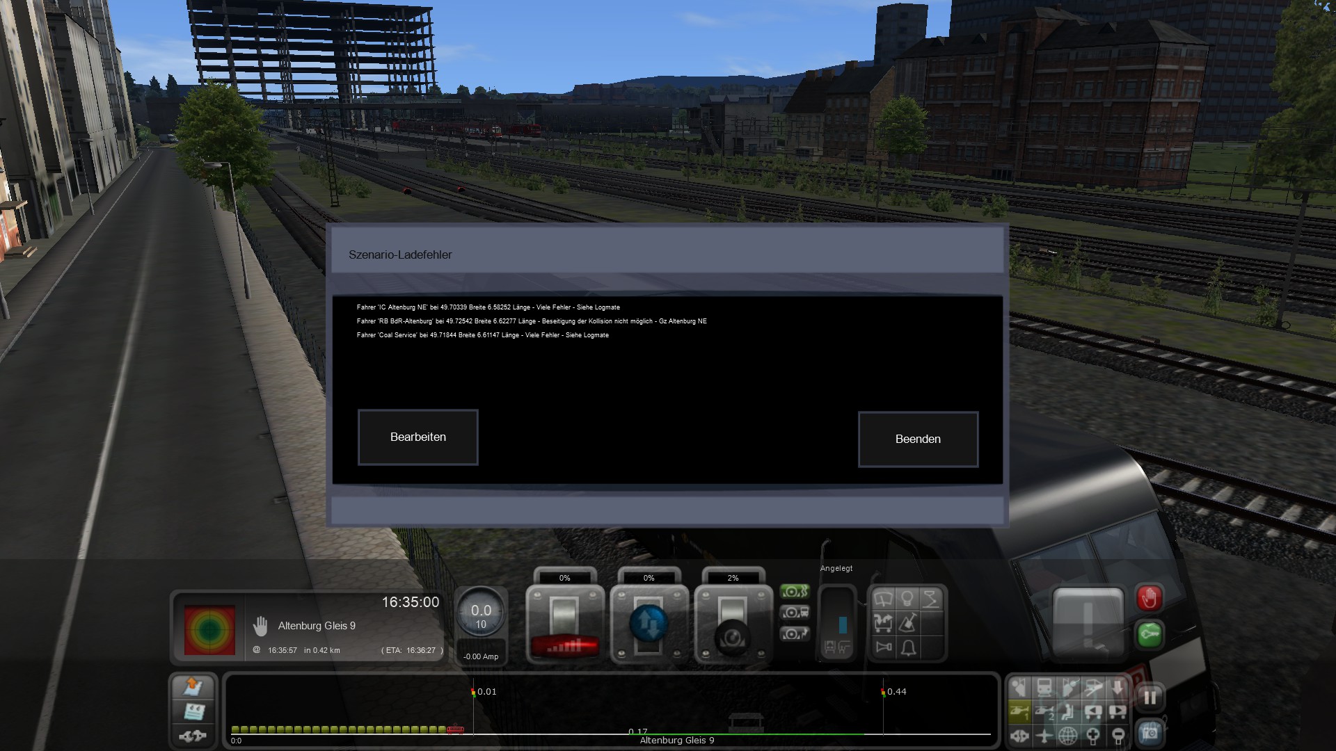 3 Strecken funktionieren offensichtlich, bei der Strecke "Delivering Gravel to Wildau" treten aber Szenario-Ladefehler" auf.
