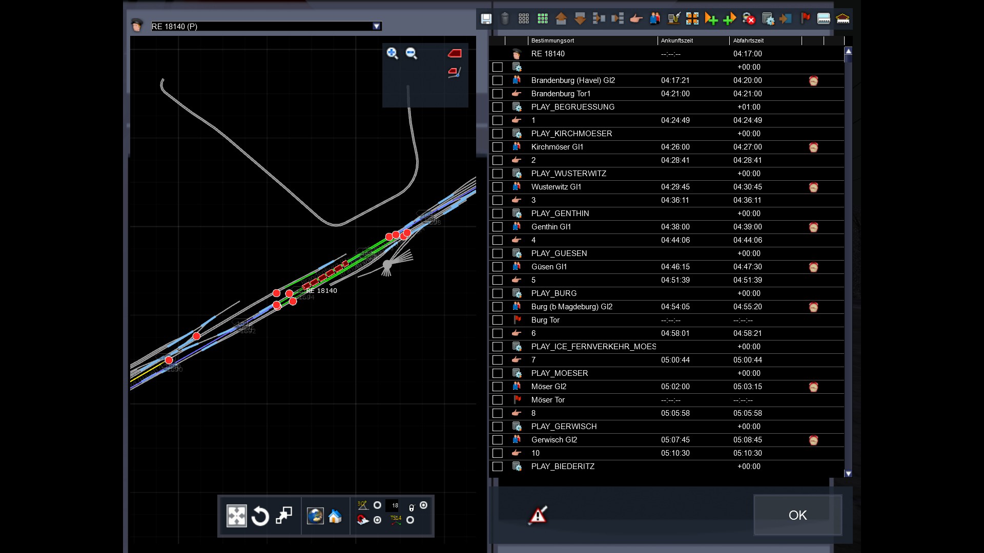 • Leider hat das Beispiel nichts gebracht. Man sieht zwar, wie die ansage eingebaut wurde und das funktioniert auch. Aber ein Beispiel mit einem fertigen kurzen Szenrario würde u.U. das Rätsel lösen. Denn wie kann ich den Haltepunkt, was 3DZug mit Wegmarkierungen macht, der die Ansage beispielsweise ca. 500 m vor Erreichen des nächsten Bahnhof auslöst, setzen. Mir ein Rätsel, die setzen den Punkt vor dem Bahnhof auf die Gleise, vielleicht bin ich zu blöd, das bring ich einfach nicht hin. Man kann Haltepunkte im Editor nur z.B. an Bahnhöfen setzen, nicht vor dem Bahnhof. Die Anleitung von scarlet mit den Screenshots hat da leider nicht geholfen.