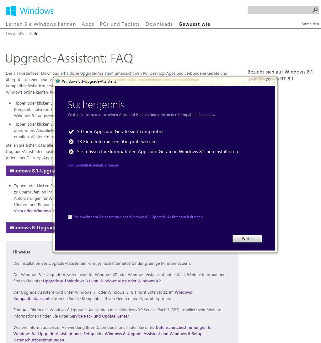 Keine Probleme mit 8 bzw 8.1 -