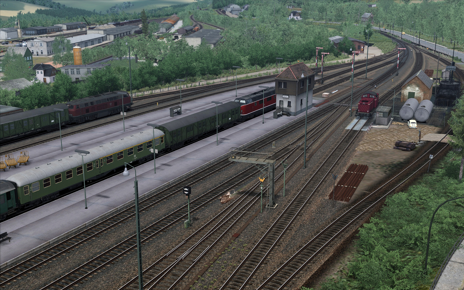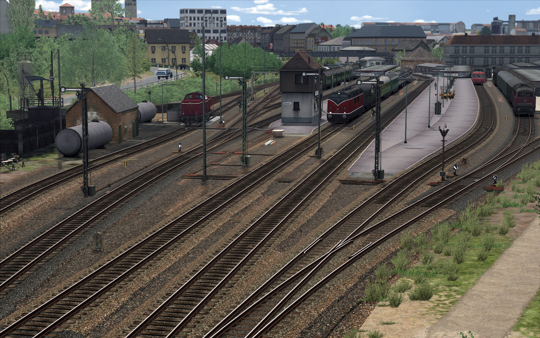 06: Der Blick vom Hang auf die ausfahrbereiten Züge sowie das Diesel BW (bis heute schätze ich kann dort getankt werden). Stellwerk 2 war bis vor wenigen Jahr das wichtigste Stellwerk (Stellwerk 1 war im Gbf).