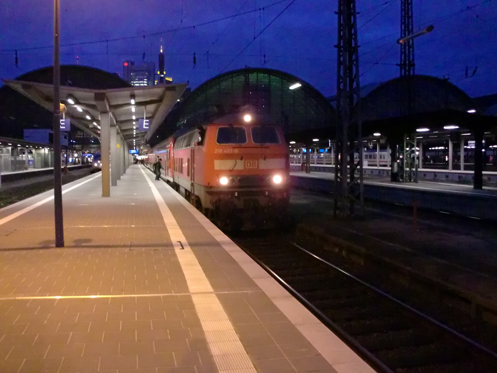 16:44 Ffm Hbf, nach Glauburg, vorne war 218 417 zu sehen... wenn es mal wieder einen Ausfall einer 245 geben könnte (was durchaus nicht total unmöglich ist) wird wieder eine 218 den Zug übernehmen.