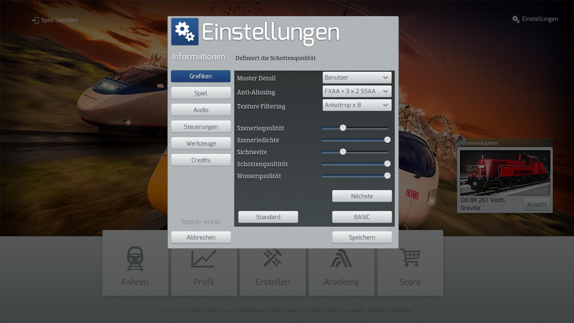 Ich hab versucht ein paar Aufgaben von hier zu meistern, machen einen sehr sehr guten Eindruck! Back to the 80's konnte ich mit allen Einstellungen auf Anschlag ohne Probleme durchfahren. Nur bei bei IR 2008 "Neptun" und IR 2411 Dortmund - Frankfurt hatte ich so meine Probleme! IR 2008 läuft auf max settings bis kurz vorm 2. Halt total flüssig und stürzt dann ab. IR 2411 konnte ich gar nicht starten und selbst bei extrem reduzierten Grafikeinstellungen komm ich nicht sehr weit bis es abstürzt!