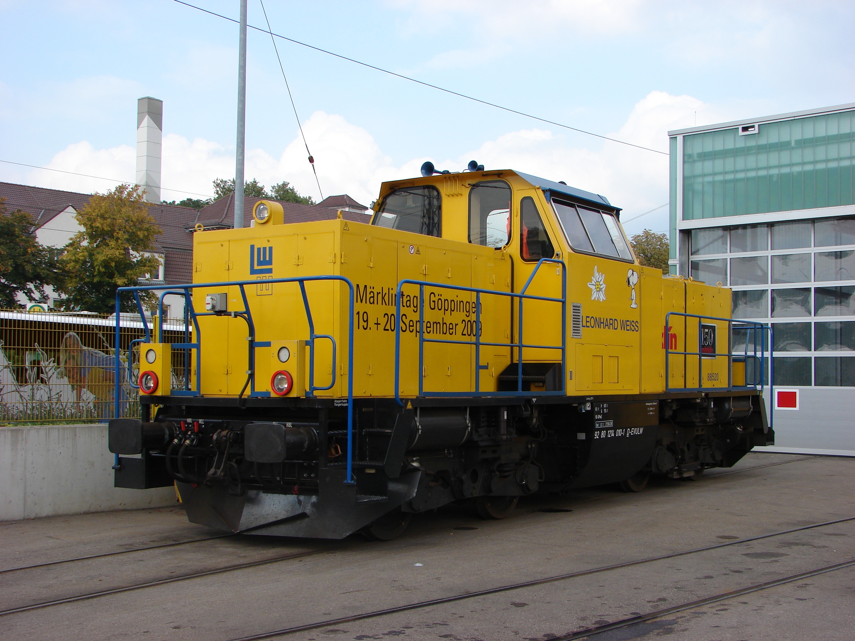Anbei noch ein Beweisbild (ist allerdings der erste Abzweig auf das Werksgelände, gab es früher meines Wissens nicht) aus dem Jahre 2009 (natürlich anlässlich der Märklintage ;) ). Und weil ich es passend finde noch 2 Fotos von Leo-Loks. Die Firma macht auch Gleisbau!