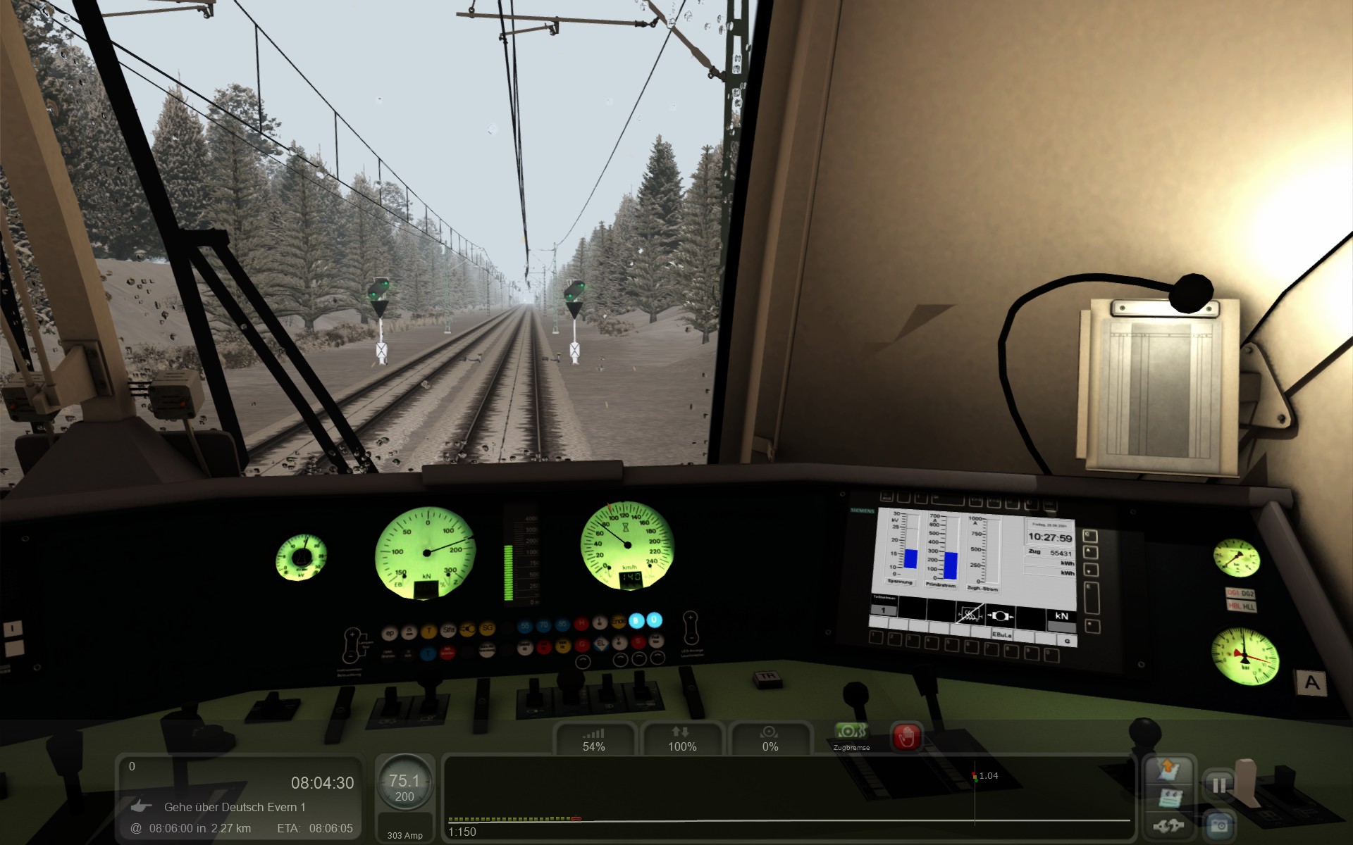 Es gibt im TS ein Karriere-Szenario, wo man mit einer Siemens-Güterzug-E-Lok im Schnee einen schweren Güterzug auf der Strecke Hamburg-Hannover fahren muss. Dort wird in der Szenario-Beschreibung gesagt, man müsse mit Blockaden und roten Signalen auf der Strecke rechnen. Die Strecke selbst ist aber LZB-geführt.