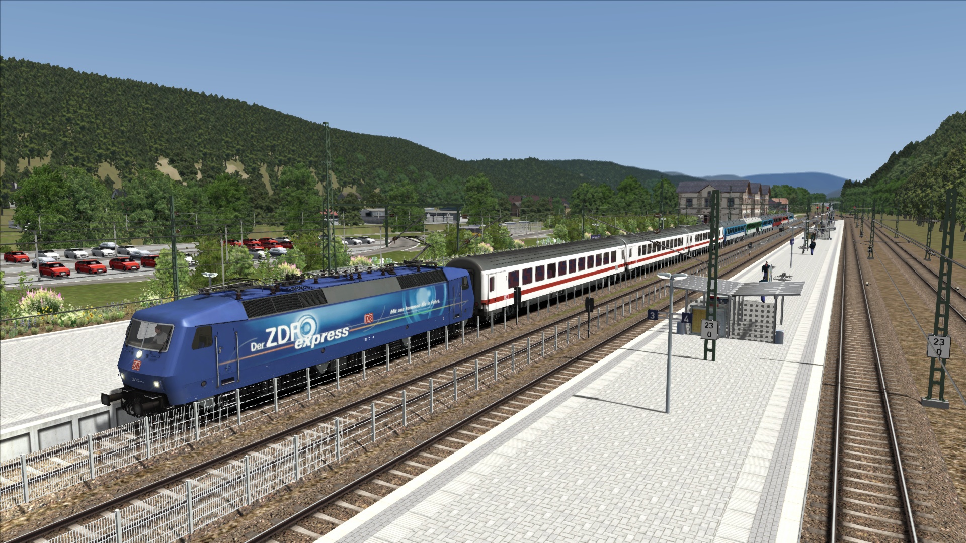 Oder man setzt noch kurz zurück und hängt die restlichen Wagen an.Meine Version des EC174