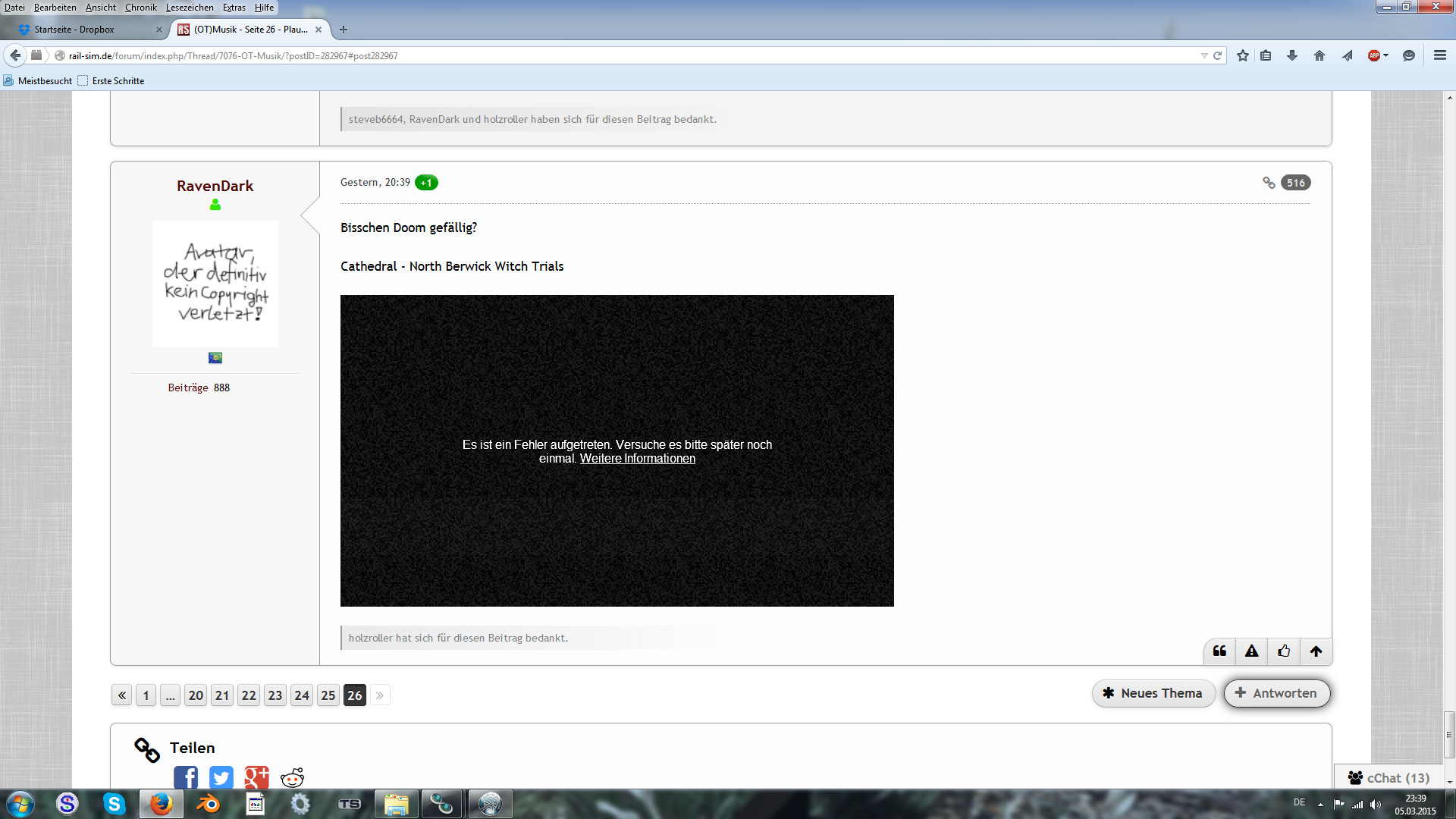 bekomme plötzlich immer diese Fehlermeldung, wenn ich ein Video im Forum anklicke.