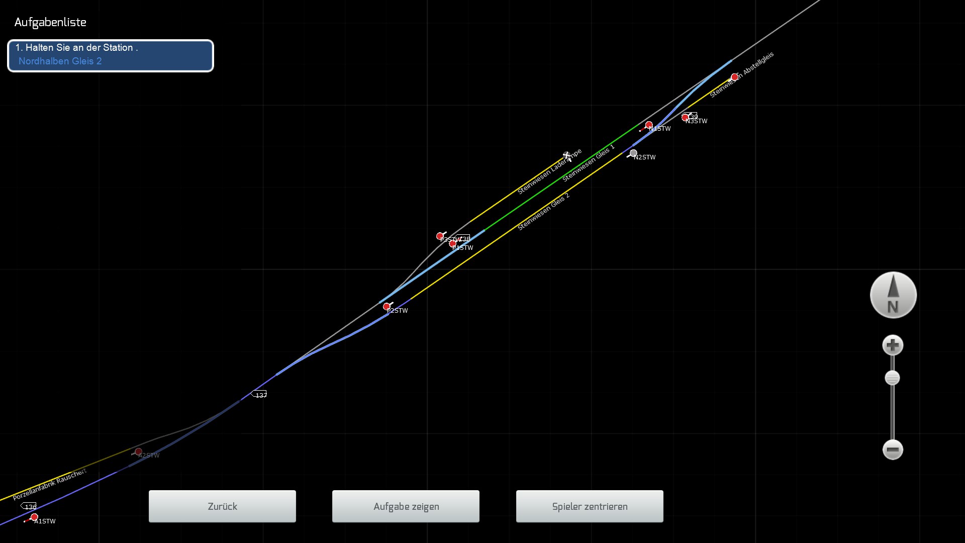 Normalerweise sollte es über Gleis 1 gehen, nicht über Gleis 2. Ich bin mir auch noch nicht ganz im klaren darüber wofür der Punkt "via" beim Marker ist.