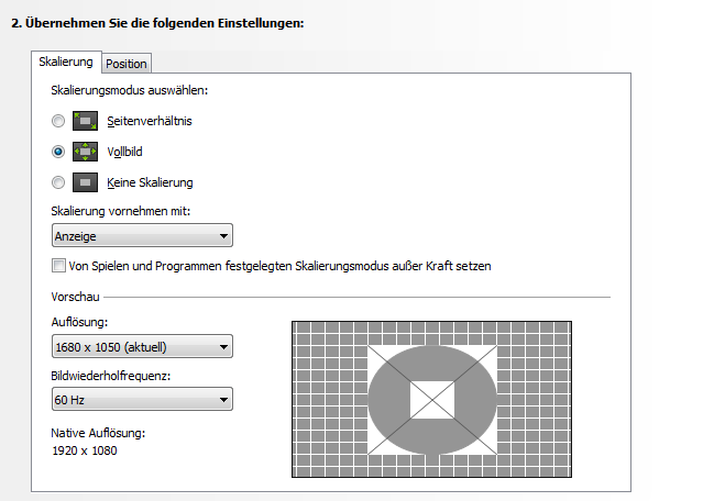 Derzeitige Auflösung ist 1680x1050