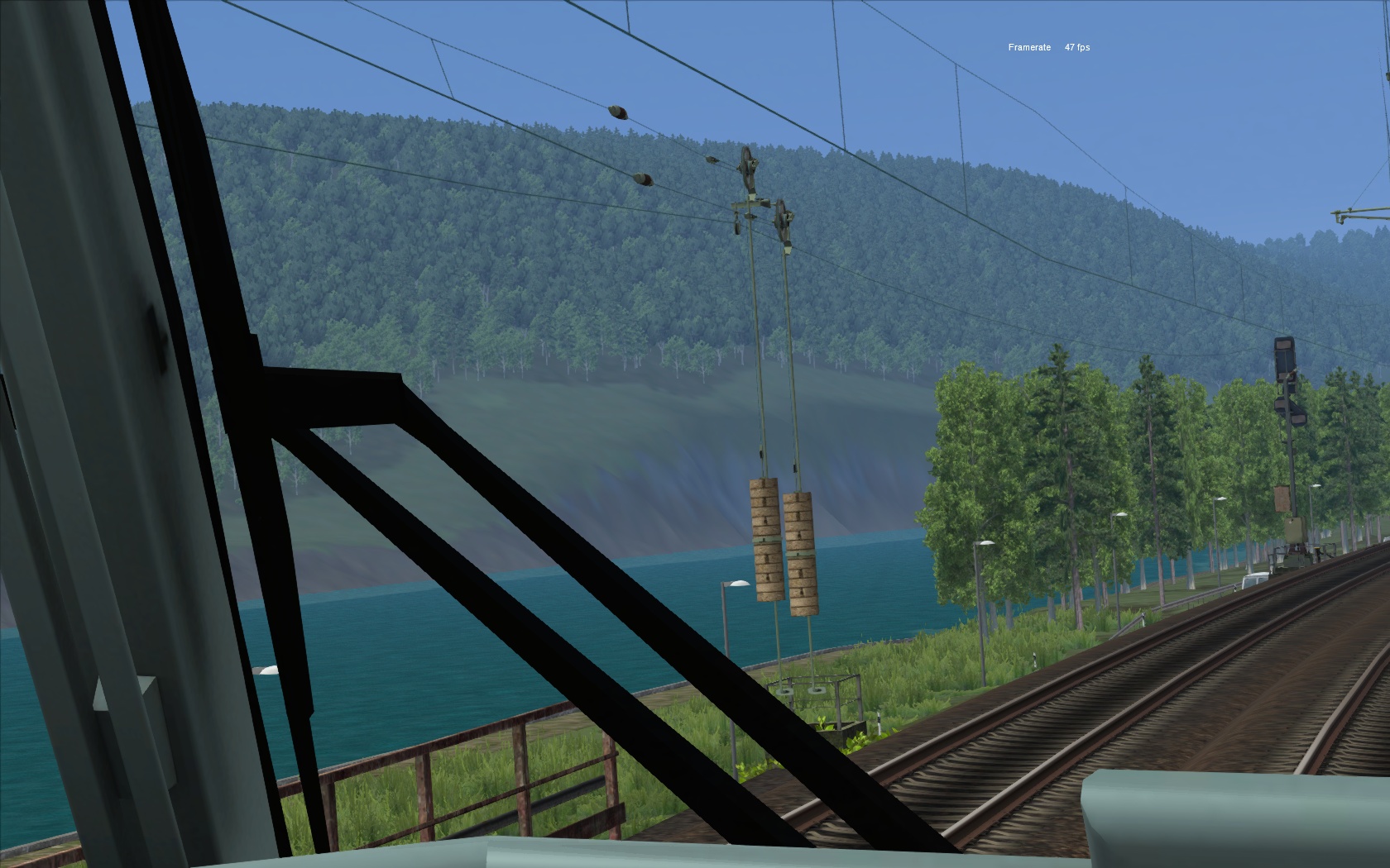 Also dann, ab nach Traben-T. Kurz nach Ausfahrt Bullay wird die Framerate sehr angenehm. Es wird langsam Tag und was ich da von der Landschaft sehe beeindruckt mich schon sehr. Das ist echt gut gemacht! Auch die Oberleitung und das "Beizeugs" kann ich nun langsam erkennen >> sehr feine Arbeit!