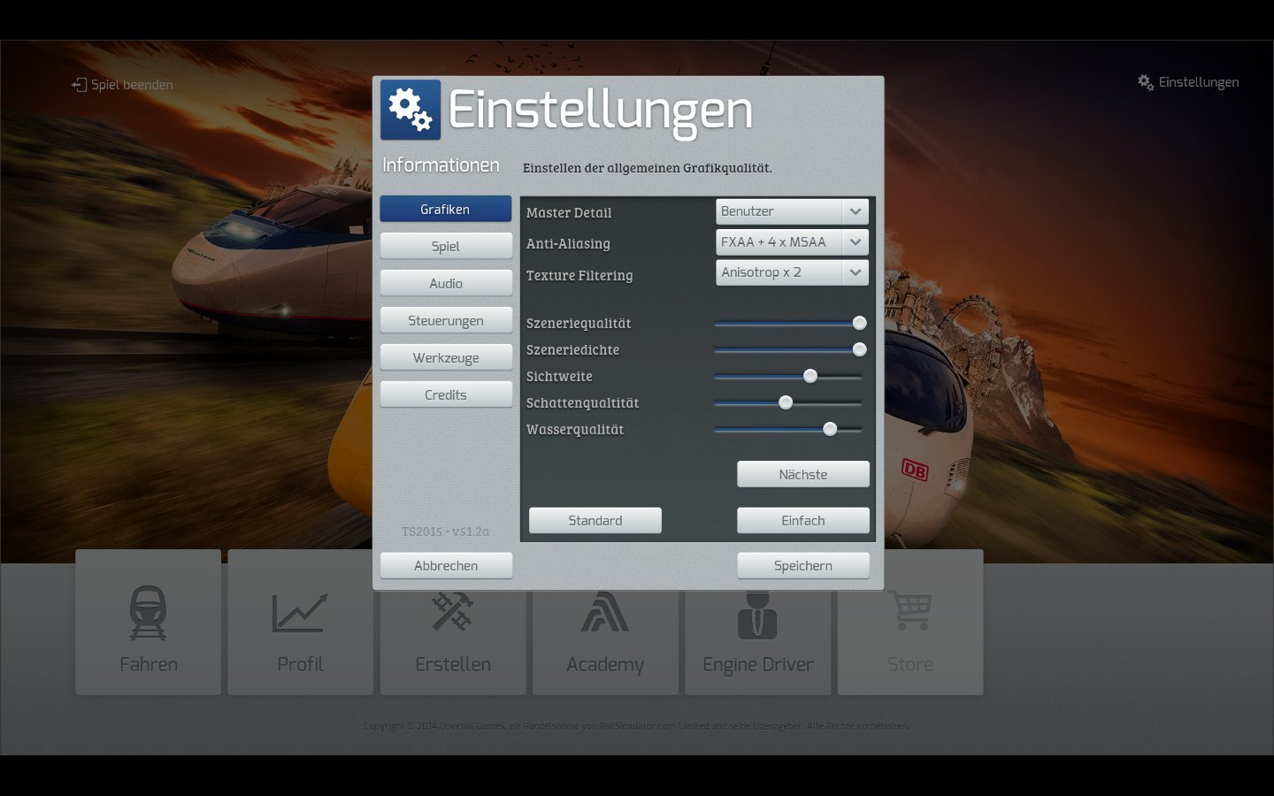 Edit: Habe es gerade noch einmal versucht, mit den Einstellungen zuerst auf Default, und danach alles wieder max; dabei habe ich bemerkt dass ich nur in der Aussenansicht die Moseltexturen sehe wie RalfK oben gezeigt hat.