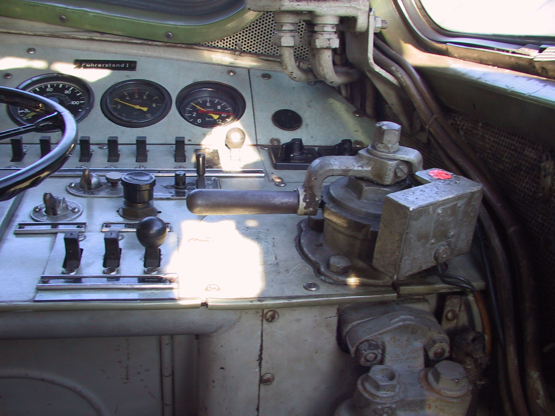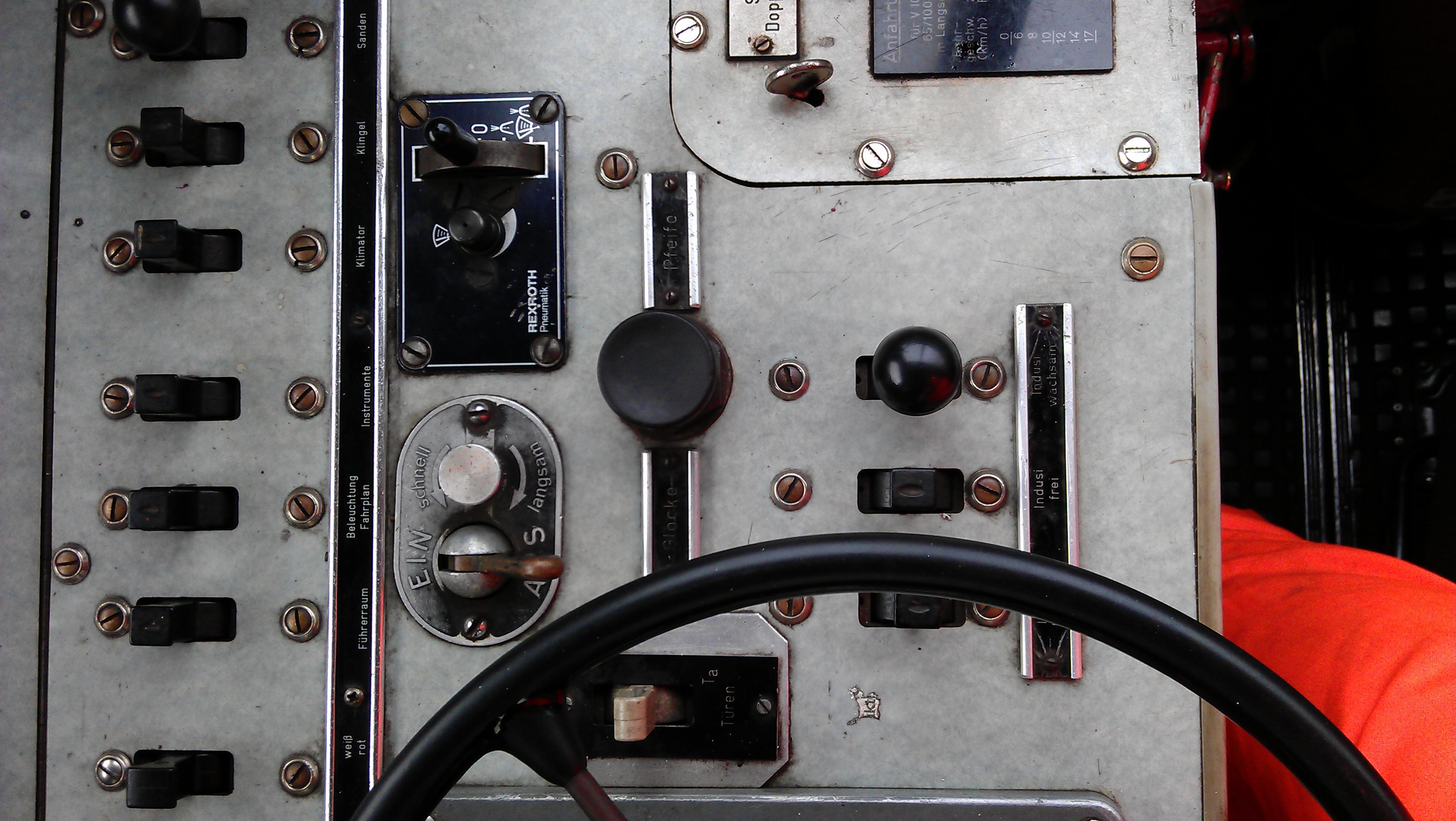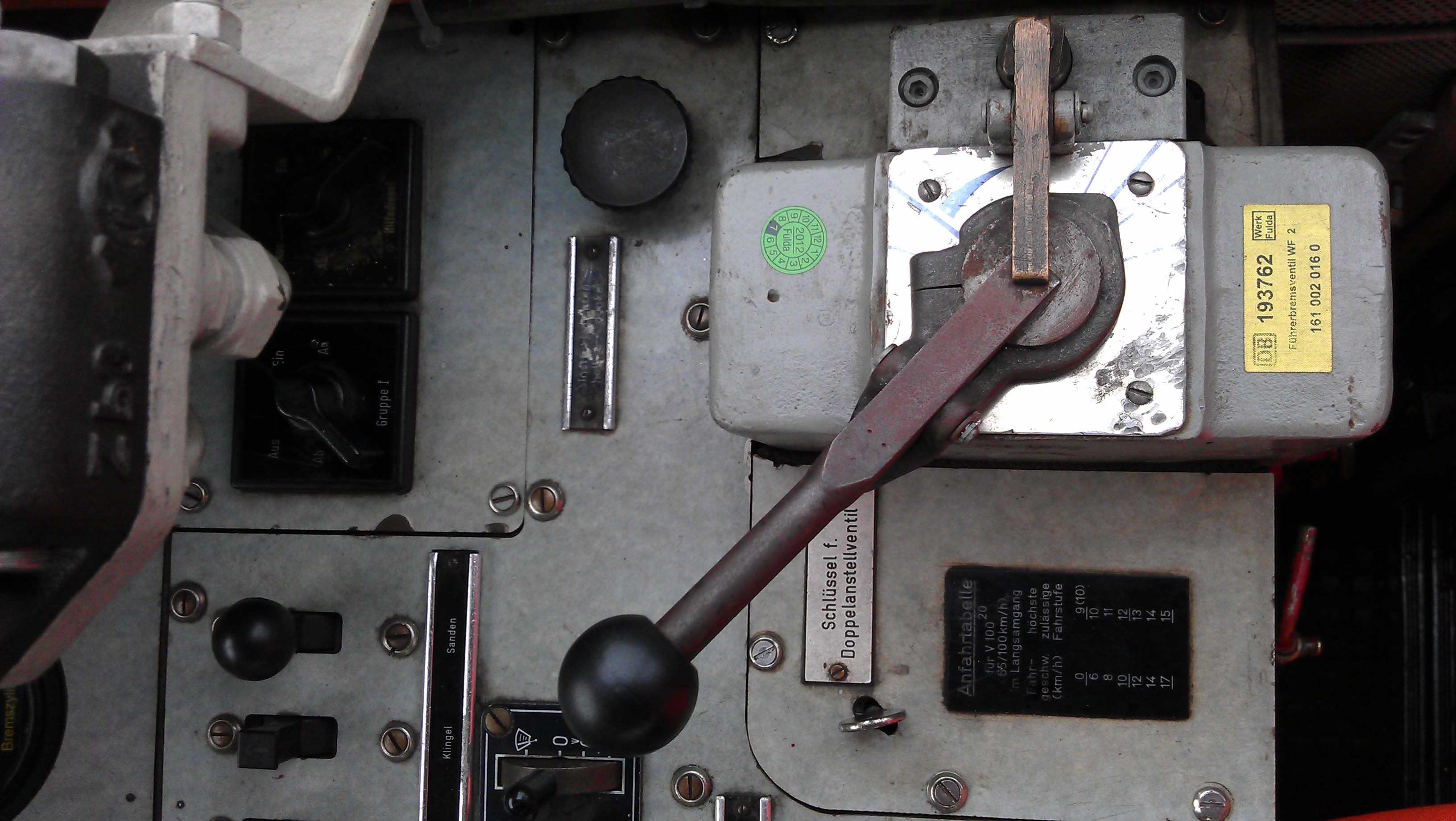 Hatte heute auf einer V100 (West) Fahrdienst und konnte dort noch einige Detailaufnahmen vom Führerstand machen, leider nur mit der Mobiltelefonkamera, aber vielleicht sind sie trotzdem auswertbar und bringen dem Projekt einen positiven Schwung nach vorne.