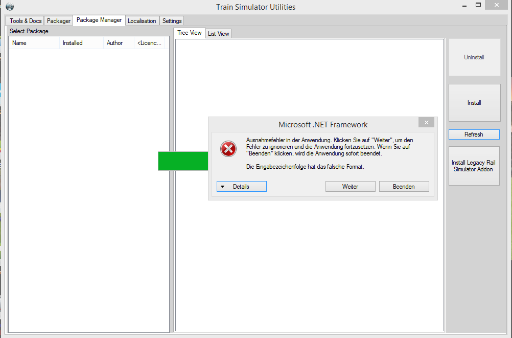 wie im Thema oben genannt funktioniert der Packet-Manager im Utilities.exe nicht sobald ich auf "refresh" (vor dem instalieren einer .rwp datei) drücke läd es ganz normal, doch kurz vor dem Ende des Ladens kommt eine Fehlermeldung (Bild unten) sobald ich diese wegdrücke schleißt sich Utilities.exe wenn ich aber auf "weiter" drücke bleibt der grüne Balken stehen und bewegt sich nicht mehr.