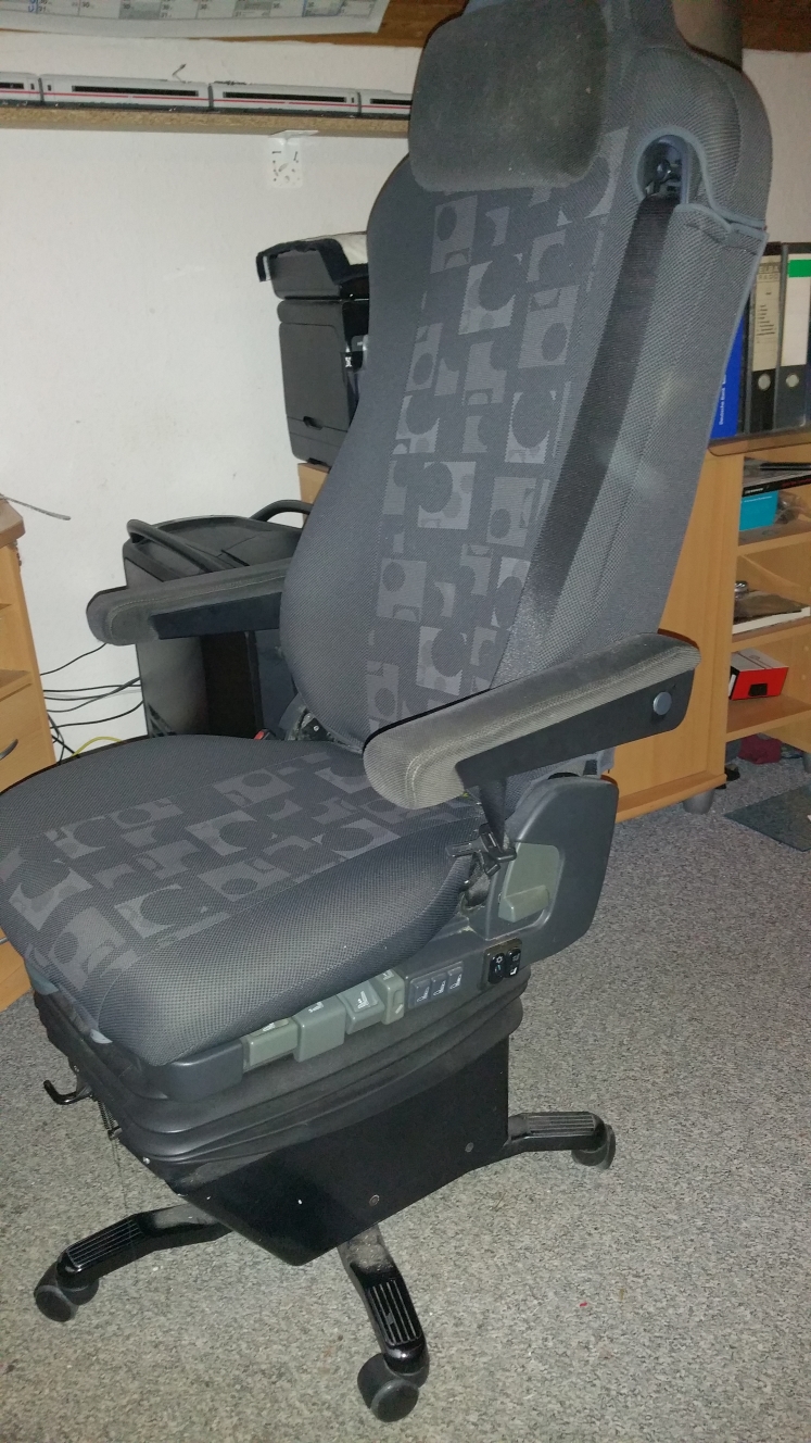 sowie den ganzen einstellungsmöglichkeiten, welche ein LKW-Fahrersitz hat, als Extra habe ich sogar die beiden Armlehnen bestellt.
