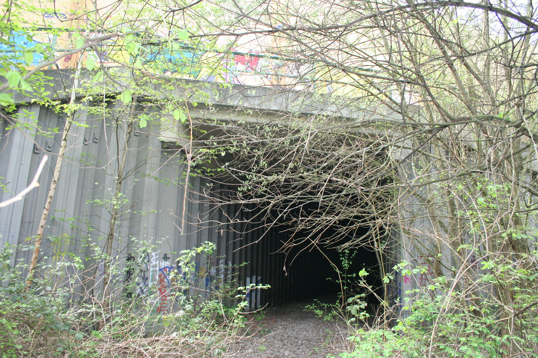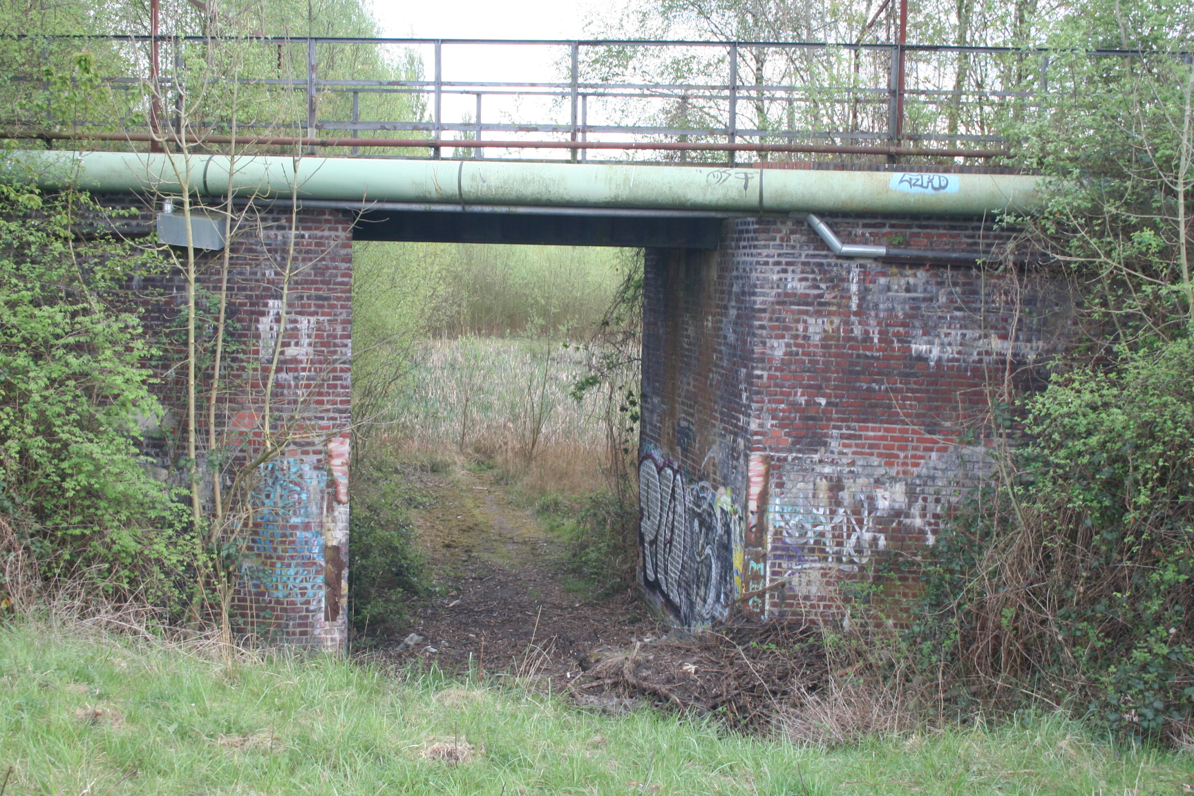 Bild4/5: Kabelkanal zum Hafen. Rechts der höher liegende Bahndamm zur Brücke.