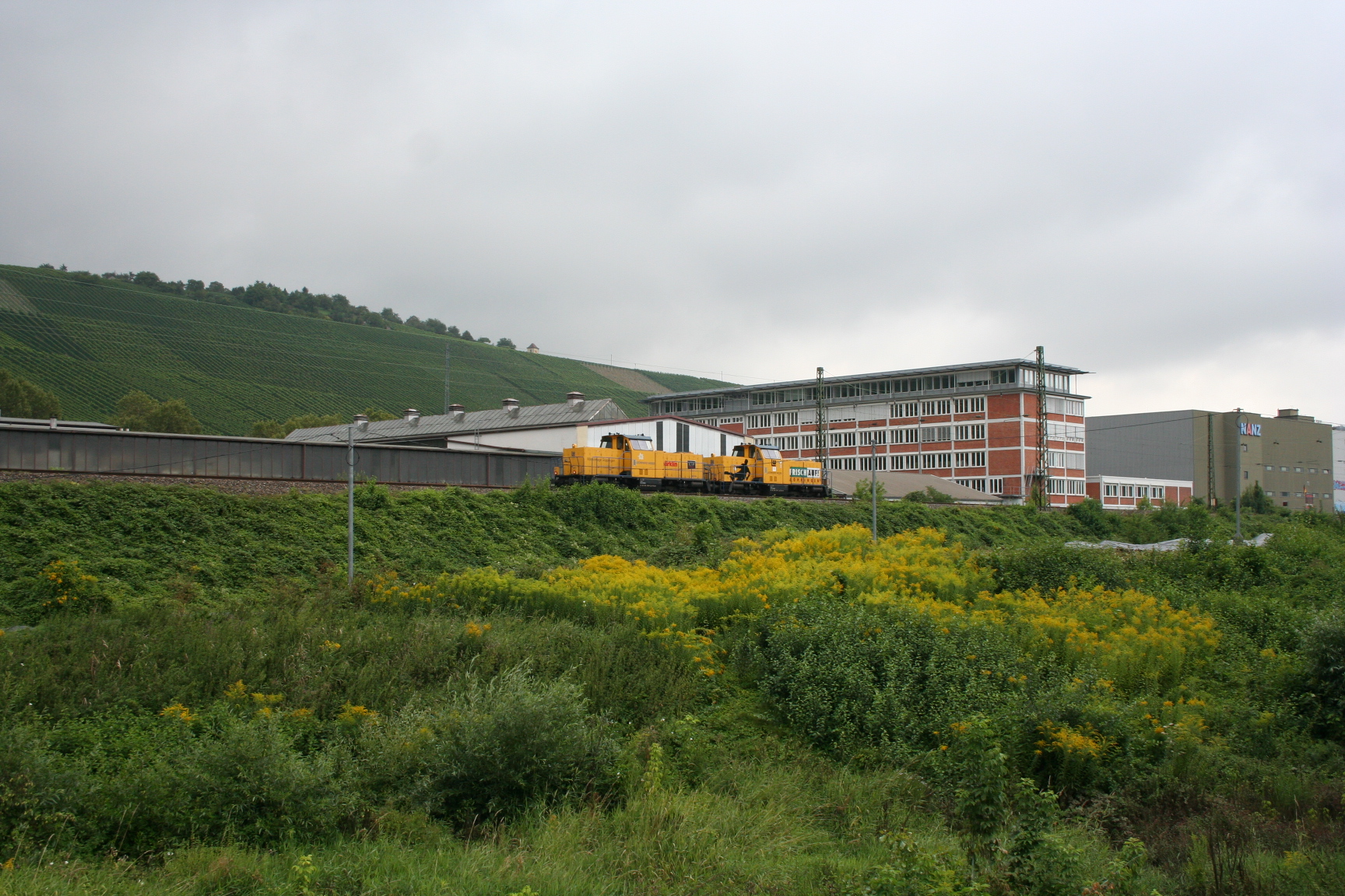 Bild10: Blick auf die Zechenhalde vom Bahndamm aus über die A2Hafen Achenbach in Betrieb: