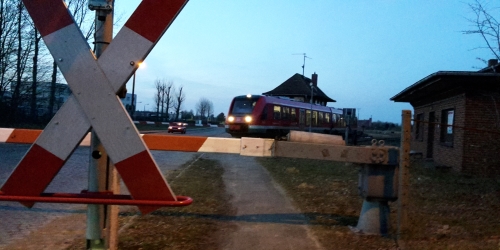 Bahnübergang Inselstadt Malchow, 19 Uhr; Lint 54