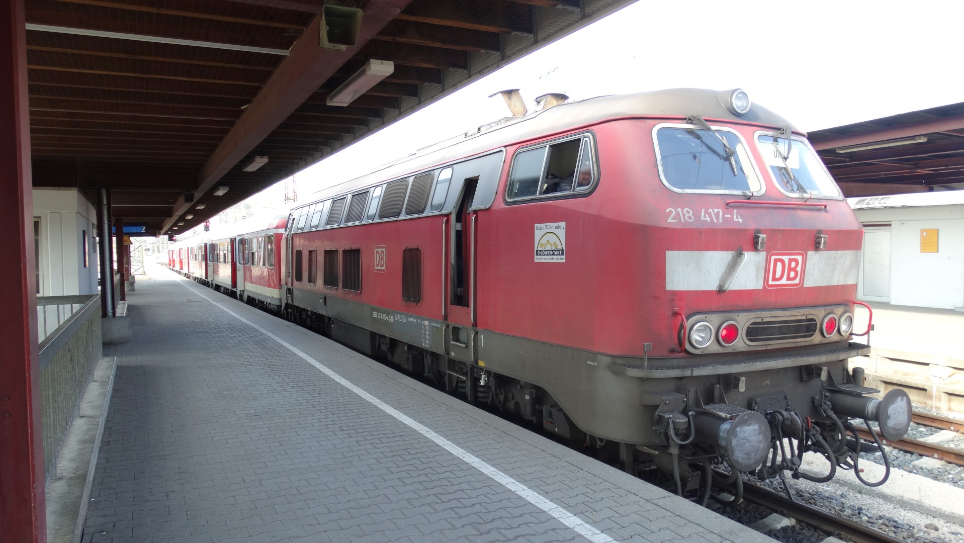 Weiter geht es mit der ziemlich dreckigen 218 417, die gerade mit RE 22339 aus Sigmaringen angekommen ist.