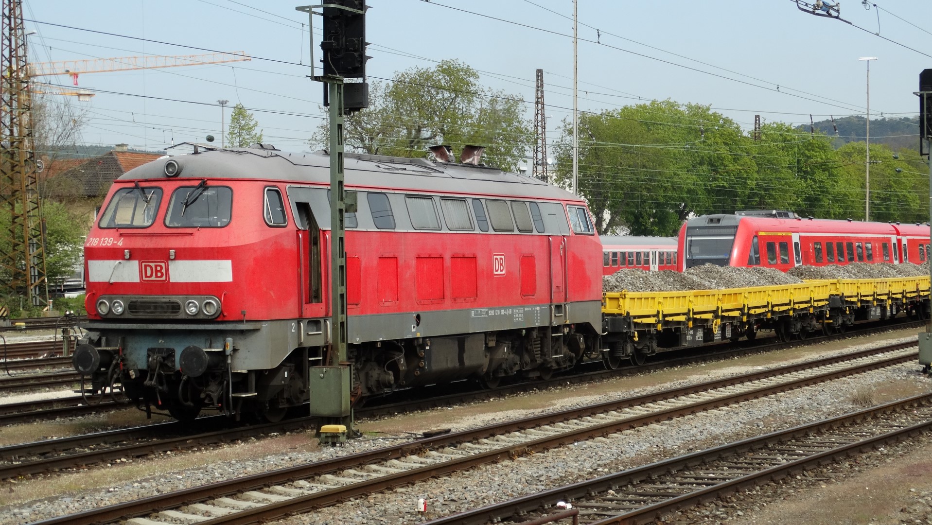 Viel Glück hatte ich, dass ich 218 139 mit einem Schotterzug antreffen konnte. Sie kam aus Richtung Süden in Ulm an,