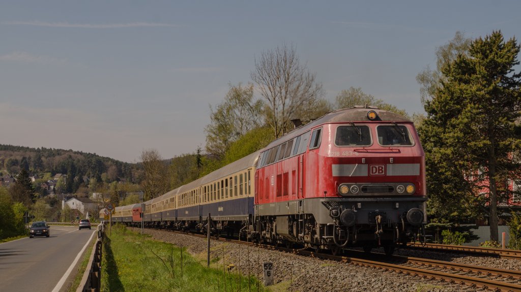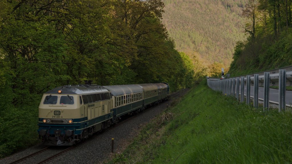 wenn du 218+n-Wagen willst, bleiben dir nur noch Sonderleistungen oder die morgendliche RB von Mühldorf nach Landshut und am Mittag zurück... (und wenn du Pech hast, bekommst 628er vor's Gesicht geklatscht)Letztens in Kall die 218 483 (eigentlich sollte es die 484 sein?) mit ihrem Centralbahnsonderzug von Hetzerath über die Eifelstrecke nach Münster... und noch 'n Bild im Netz der WFB letztens.