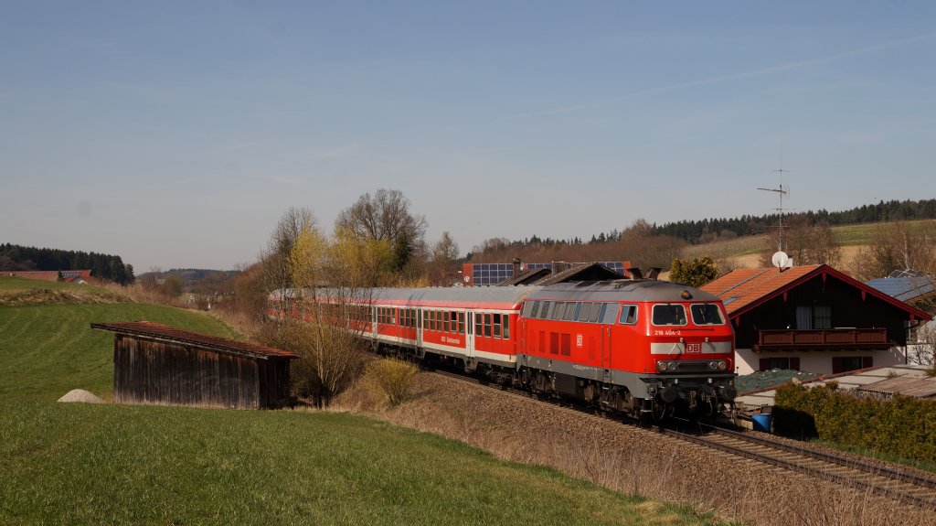 Derweil gleich direkt ein Bild von einer Mühldorfer 218 mit ihren n-Wagen... auf dem Rückweg von Landshut nach Mühldorf, von drei malen die einzige 218