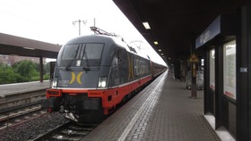Flirt 3 der Eurobahn in neuen Farben auf Testfahrt in Hamm(Westfalen)