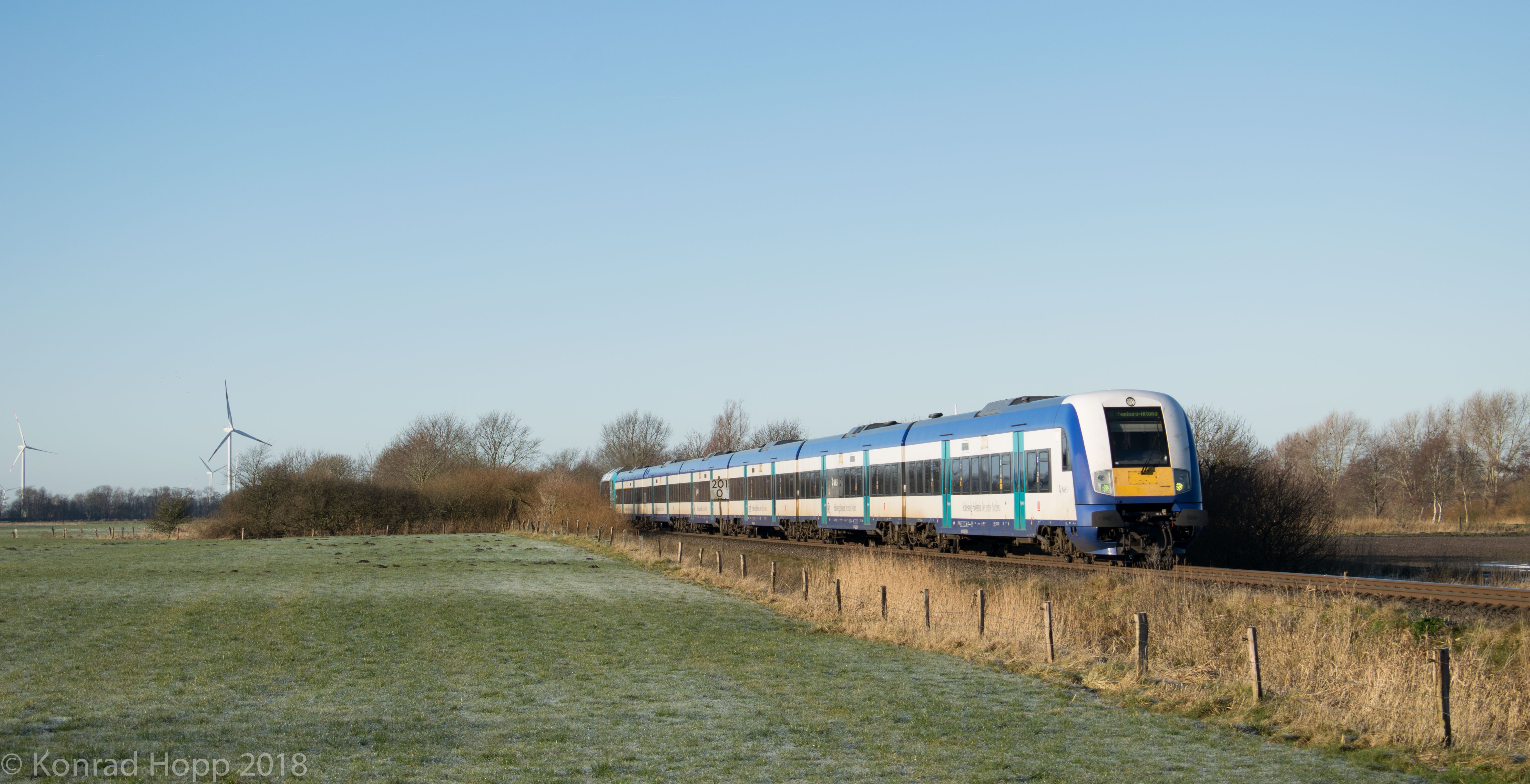Tags darauf fuhr 628 586 als Lt 27592 von Kiel nach Mühldorf in die Heimat. Der Zug hatte einen Unfallschaden, welcher zuvor in Neumünster beseitigt wurde. Aufgenommen in Lüneburg.Gestern, am 07.01.2018 entstanden dann die ersten Bahnbilder des Jahres 2018. Es ging nach Niebüll, in der Hoffnung den recht neuen Diesel-Vectron von RDC Fotografieren zu können, dessen Einsatz laut RDC Mitarbeiter zwar geplant war, allerdings nicht durchgeführt wurde... So mussten wir uns mit Marschbahn Standart-Verkehr zufrieden geben, was bei den Wetterverhältnissen allerdings auch kein Problem war.