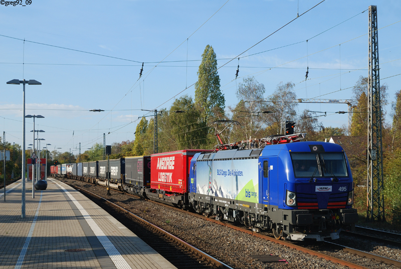 In Rumeln wurde schließlich noch eine blaue Hupac Vectron, 193 945 mit BLS Pickerl, auf der Fahrt von Oberhausen nach Krefeld als DGS 68727 abgelichet.4)