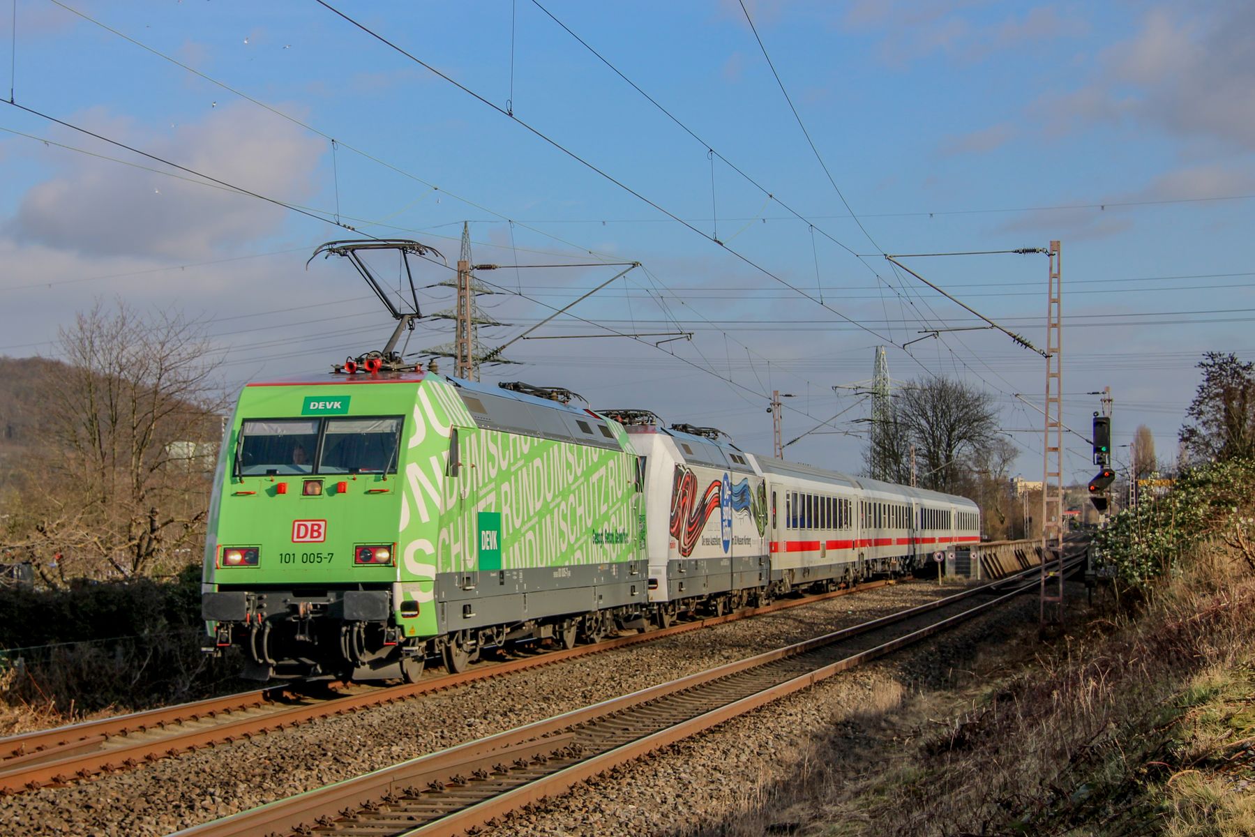 Impressionen von wegen einem PU durchs Mangfalltal umgeleiteten Fernzügen in Deisenhofen gestern Mittag.