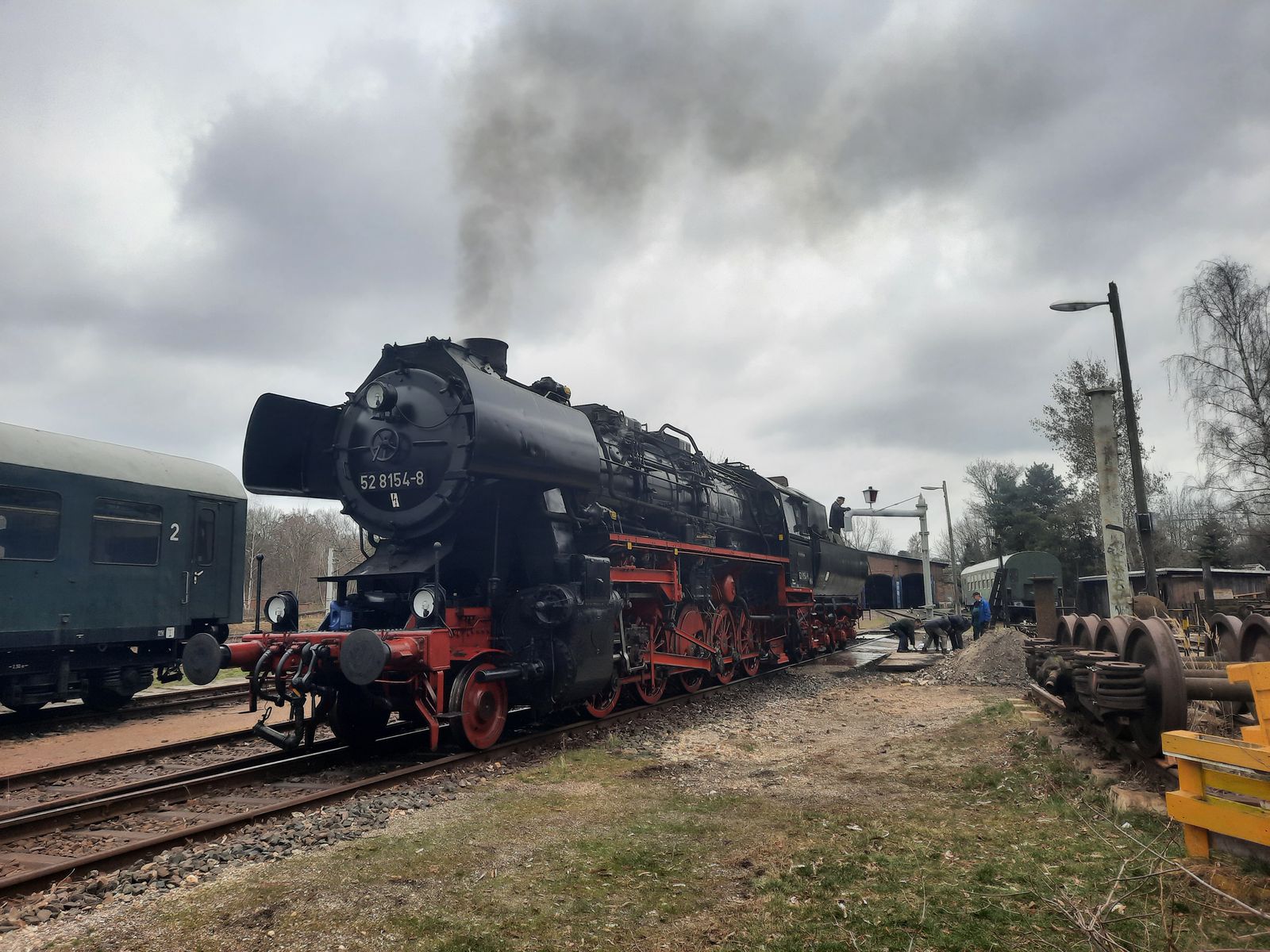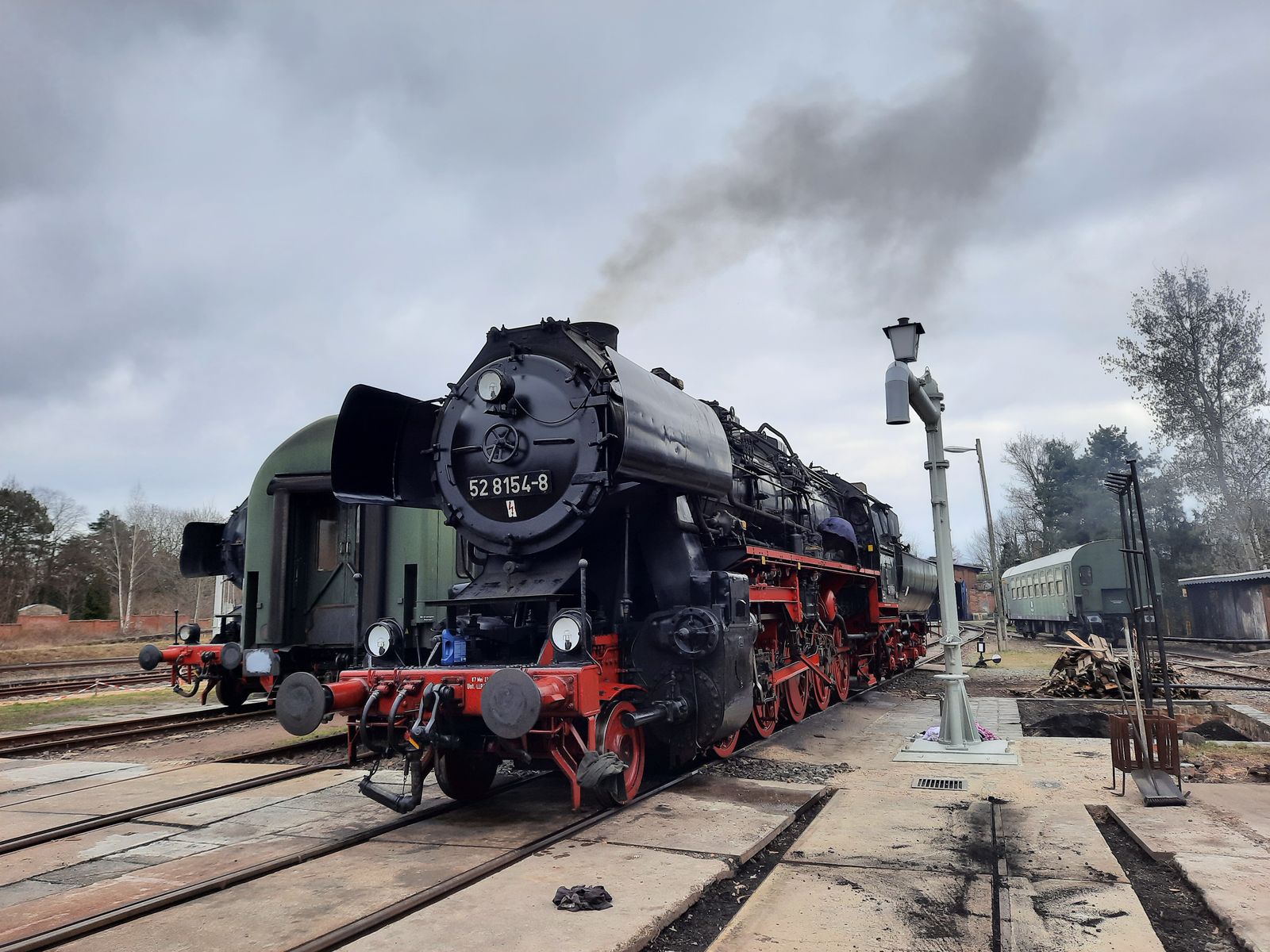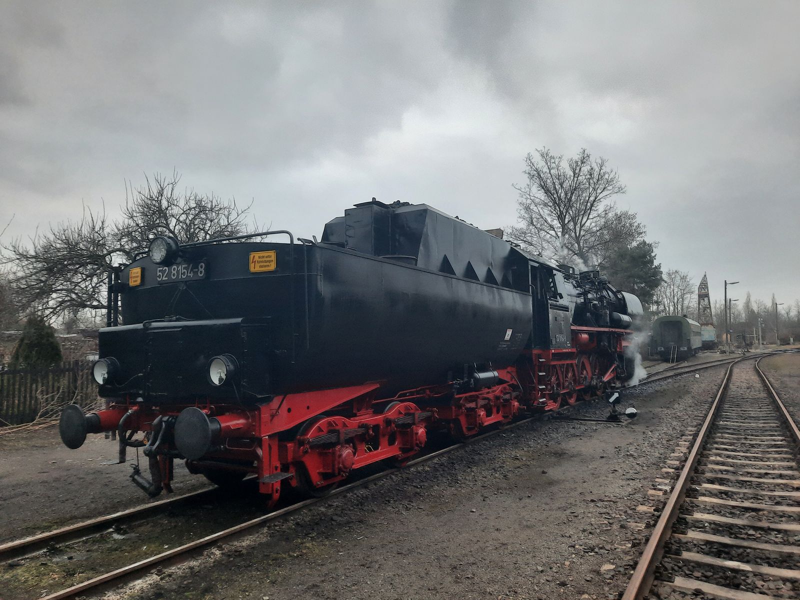 52 8154 am 04.03.2022 beim anheizen im Bw Leipzig Plagwitz