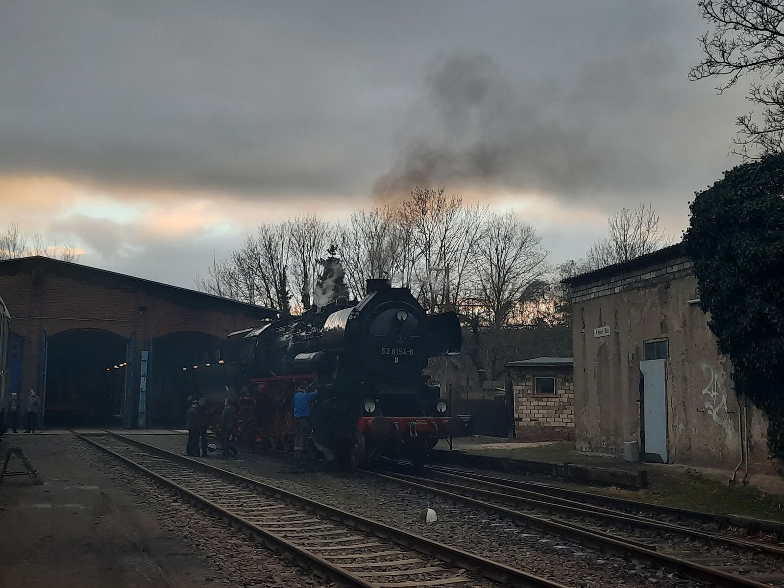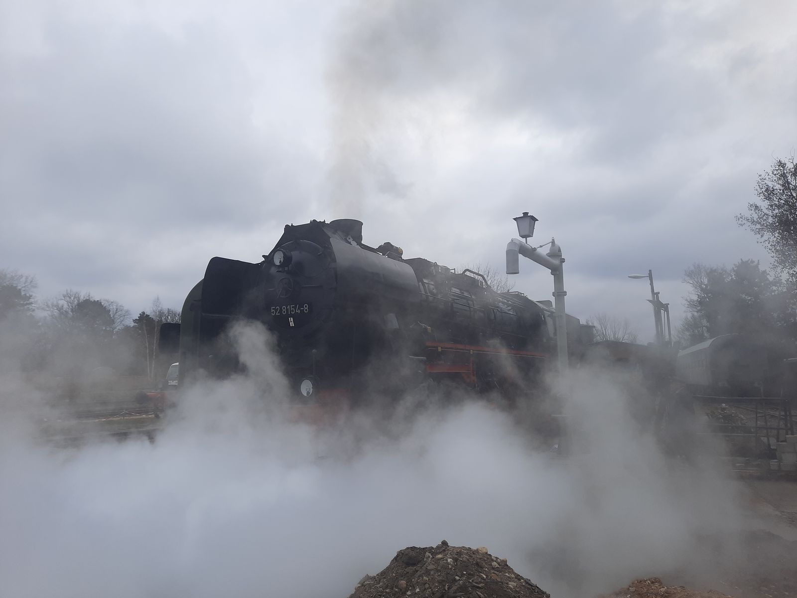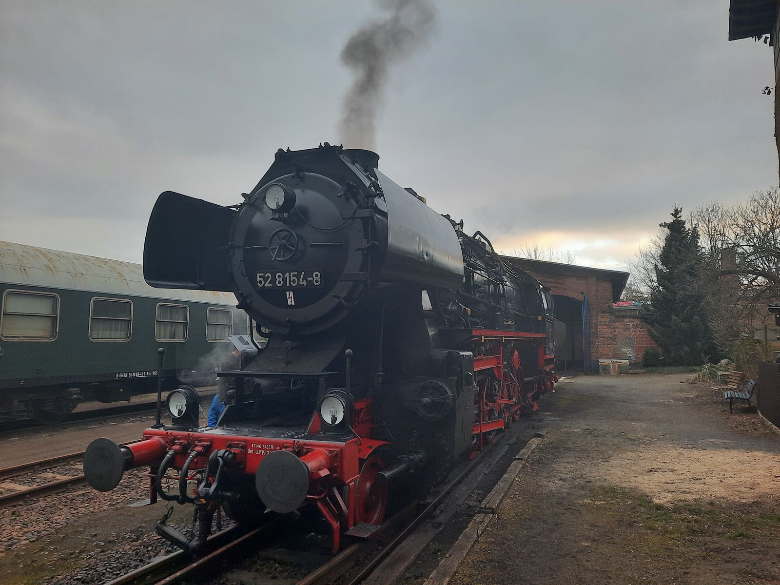 52 8154 am 04.03.2022 beim anheizen im Bw Leipzig Plagwitz