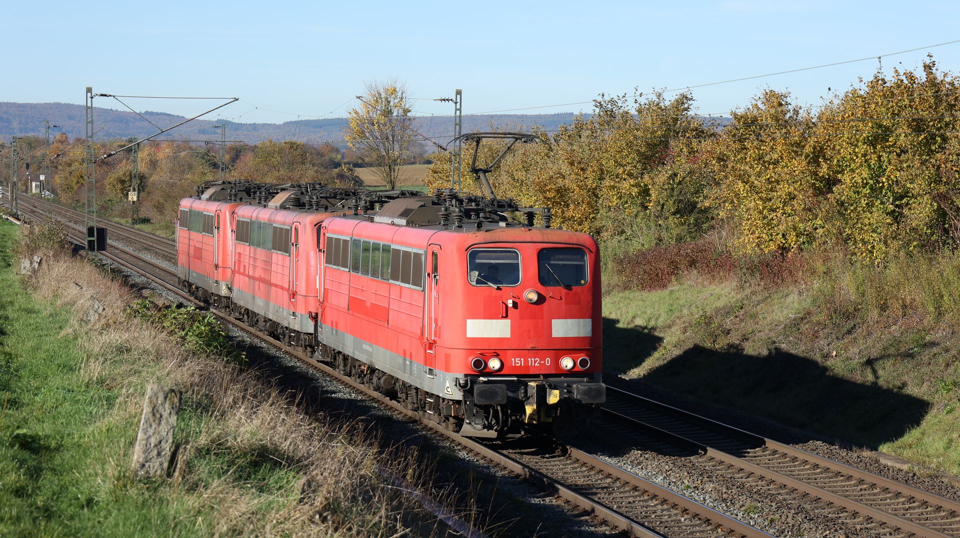Mittlerweile kein Einzelstück mehr ist die 145 022. Als diese am Morgen bereits nach Spreewitz gesehen wurde, haben wir uns Nachmittag für die Rückleistung positioniert. Am 09.10. klappte es dann zum dritten Mal mit einem Foto, diesmal sogar kurz vor Sonnenuntergang.