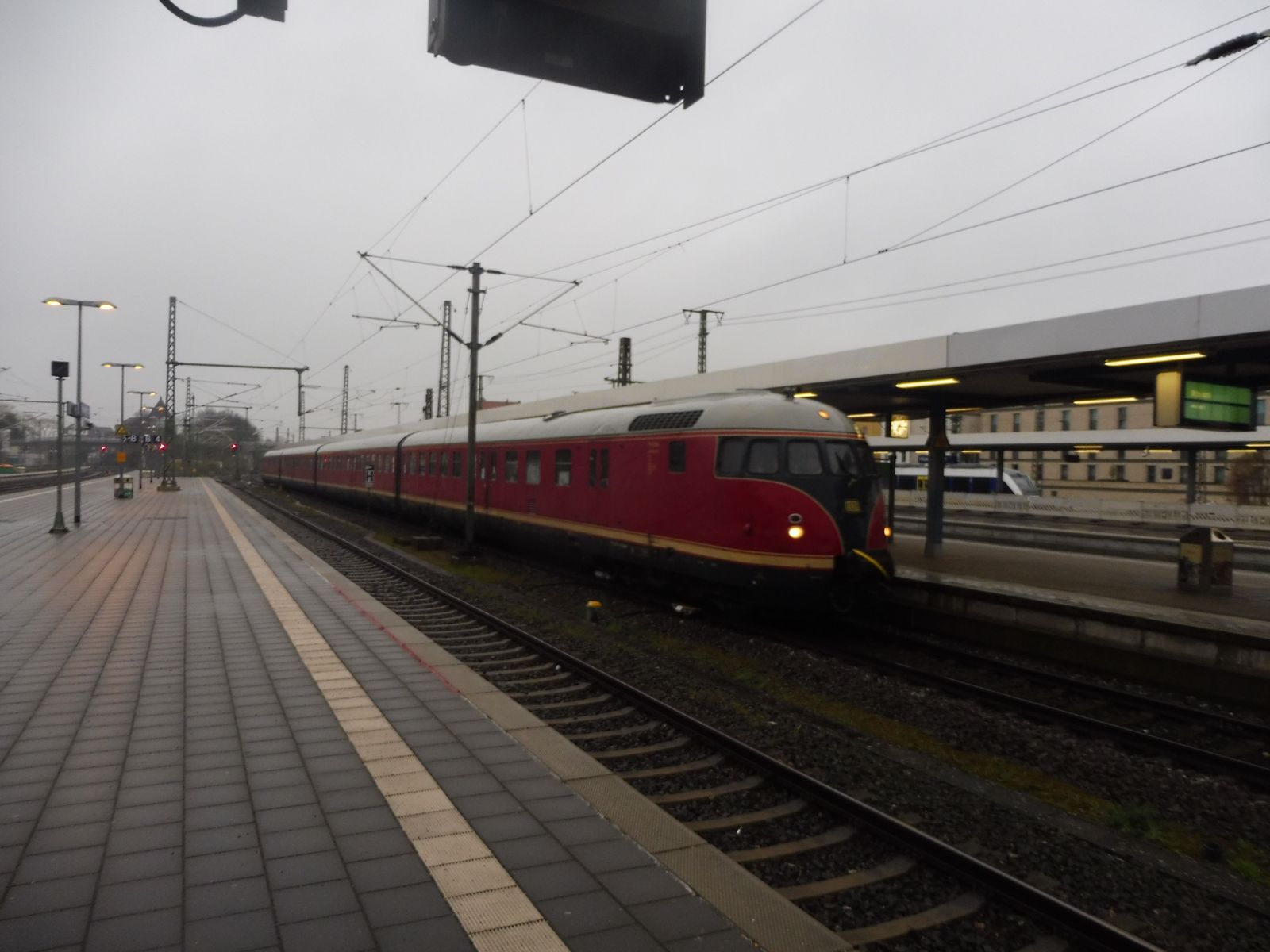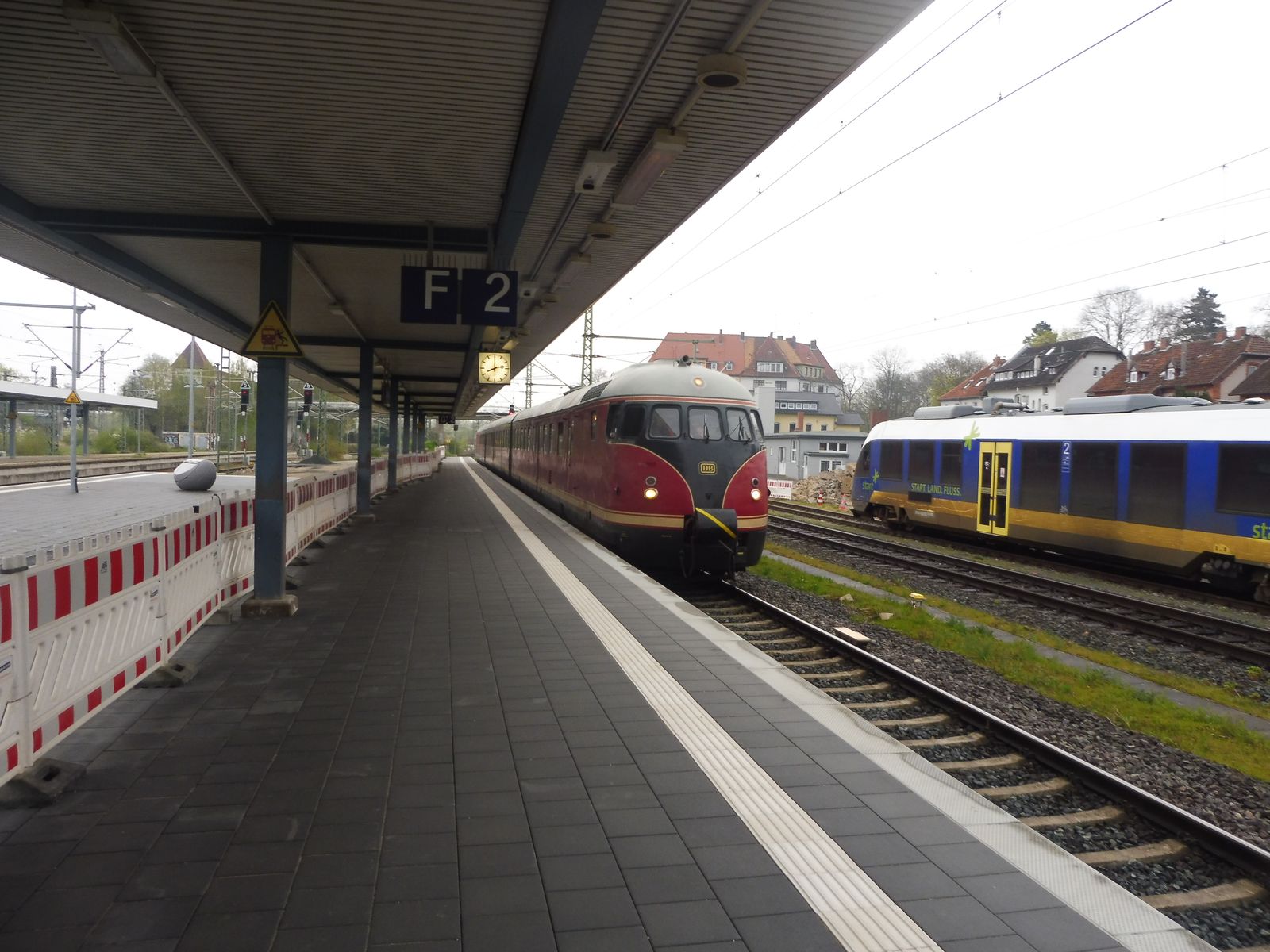 Und weil so schön war. Nochmal der Vt 12.5 alias Stuttgarter Rössle oder Eierkopf. Heute führte die Fahrt organisiert von Nostalgiezugreisen von Klein Mahner in die Stadt Einbeck u.a zur Besichtigung des PS Speichers. Aufgenommen im HBF von Hildesheim. Diesmal fuhr er auch auf dem richtigen Gleis ein.