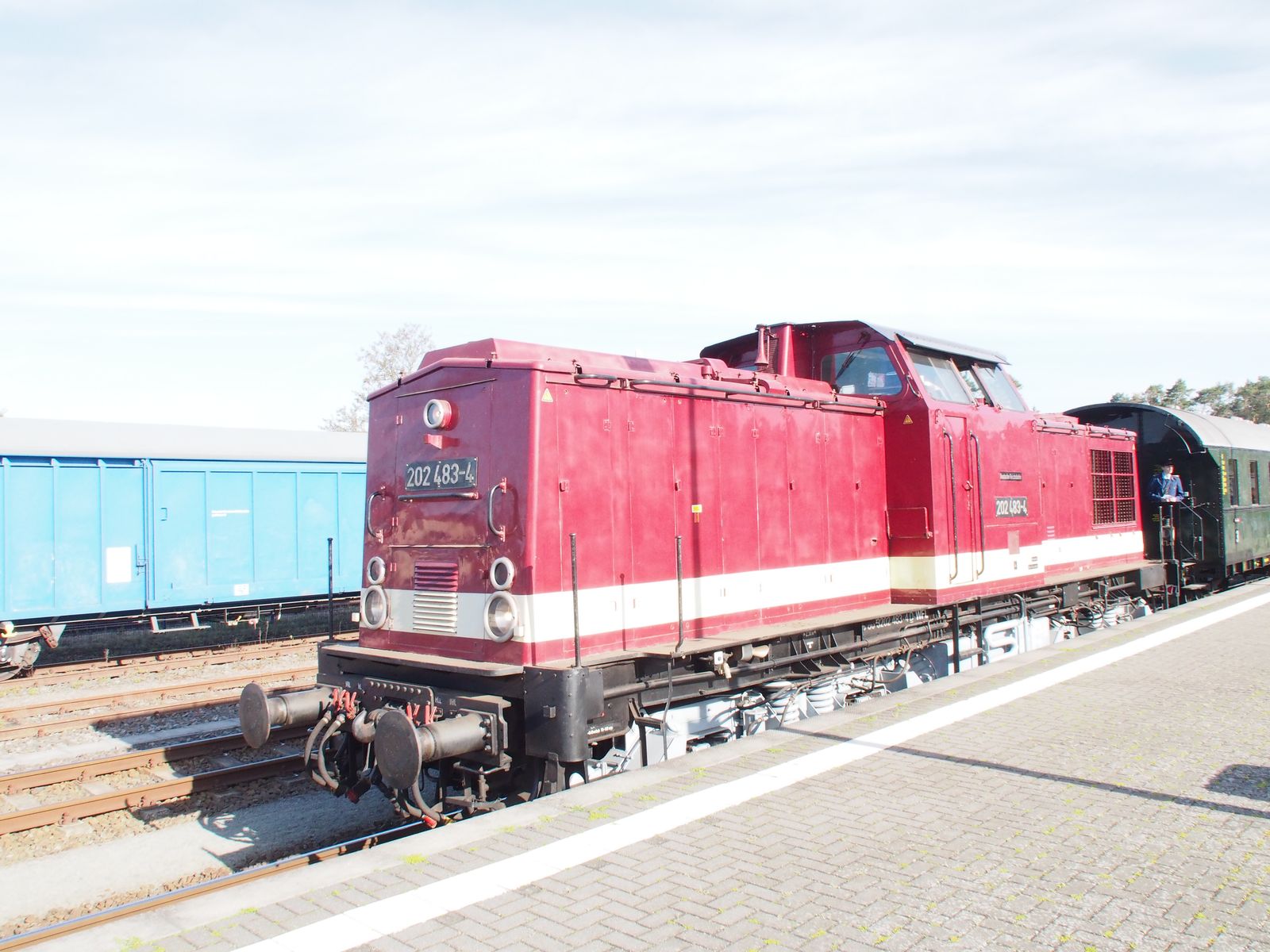 Am 18.05.2023 veranstalteten die Berliner Eisenbahnfreunde eine Fahrt zur Müritz Sail nach Waren. Ich konnte gestern in Basdorf den Zug bei der Bereitstellung als auch am Bahnsteig fotografieren. Als Zuglok kam die angemietete 202 483-4 von der WFL zum Einsatz. Von der Press befand sich eine V100 mit drei Wagen abgestellt ebenfalls dort und genau so ein RS1 Shuttle der NEB. Nach einem Halt in Lichtenberg kurz nach 9 Uhr, konnte ich den Zug nochmals am S Bahnhof Pankow Heinersdorf antreffen.