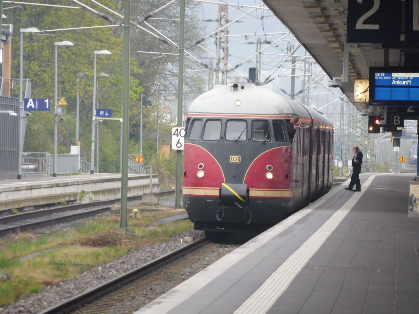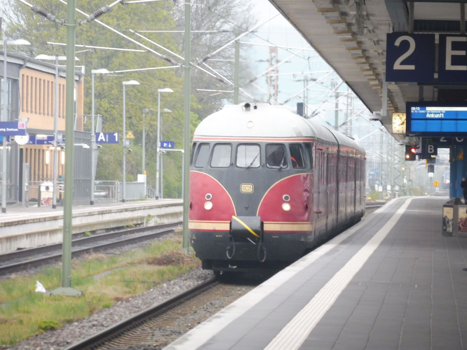 Und weil so schön war. Nochmal der Vt 12.5 alias Stuttgarter Rössle oder Eierkopf. Heute führte die Fahrt organisiert von Nostalgiezugreisen von Klein Mahner in die Stadt Einbeck u.a zur Besichtigung des PS Speichers. Aufgenommen im HBF von Hildesheim. Diesmal fuhr er auch auf dem richtigen Gleis ein.