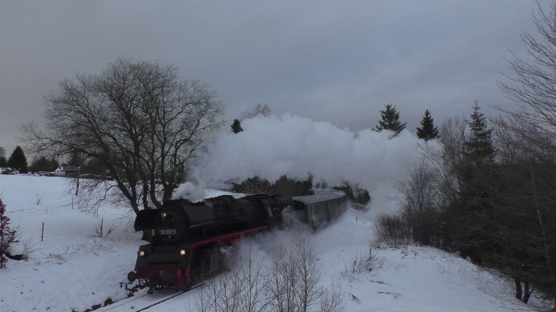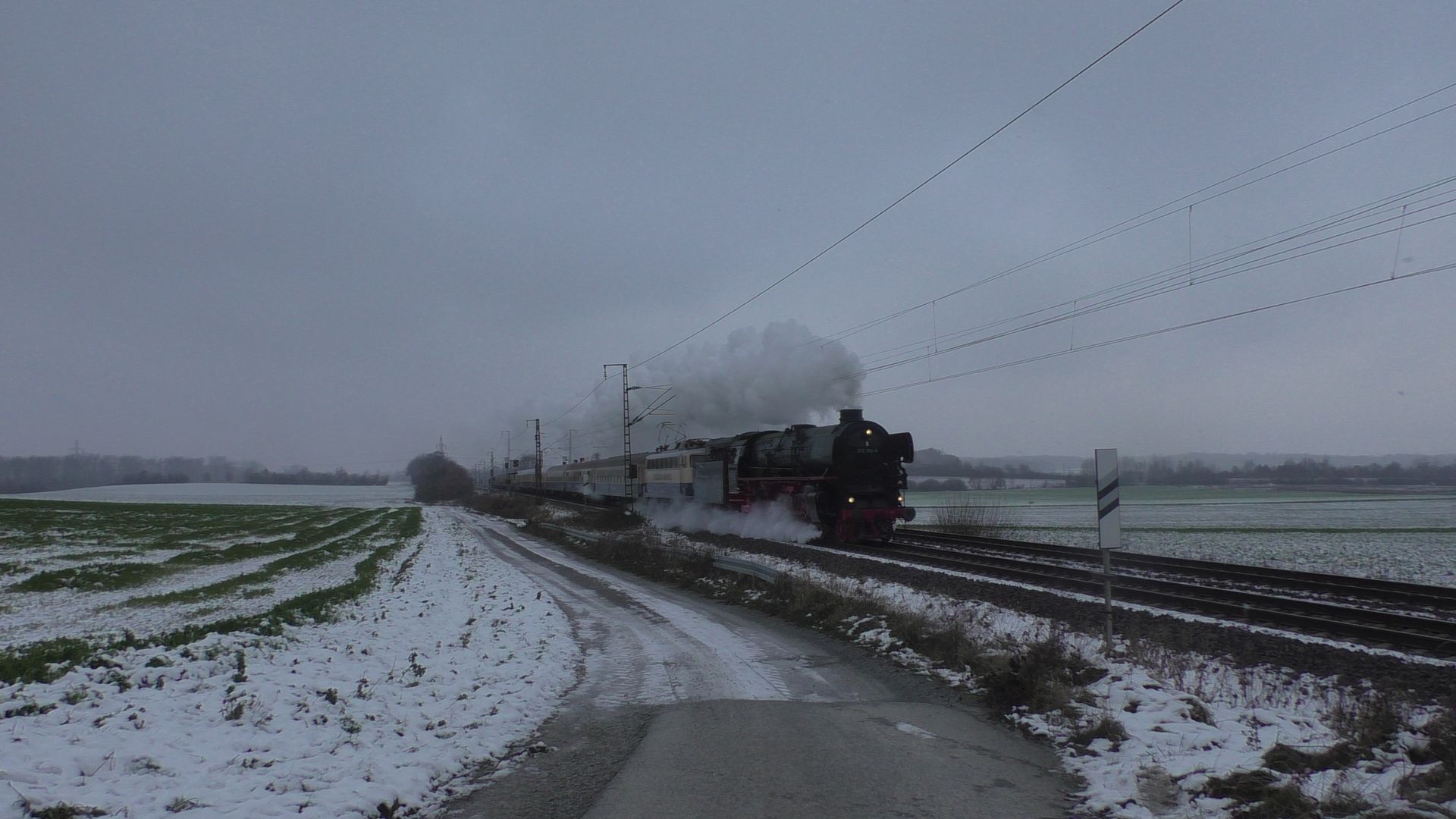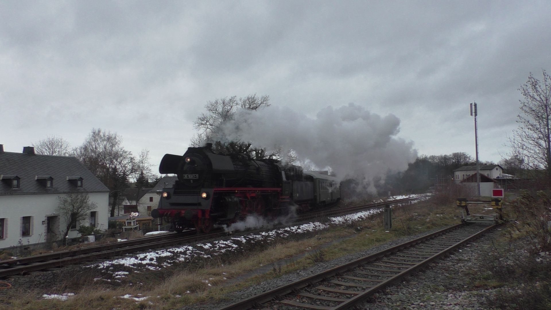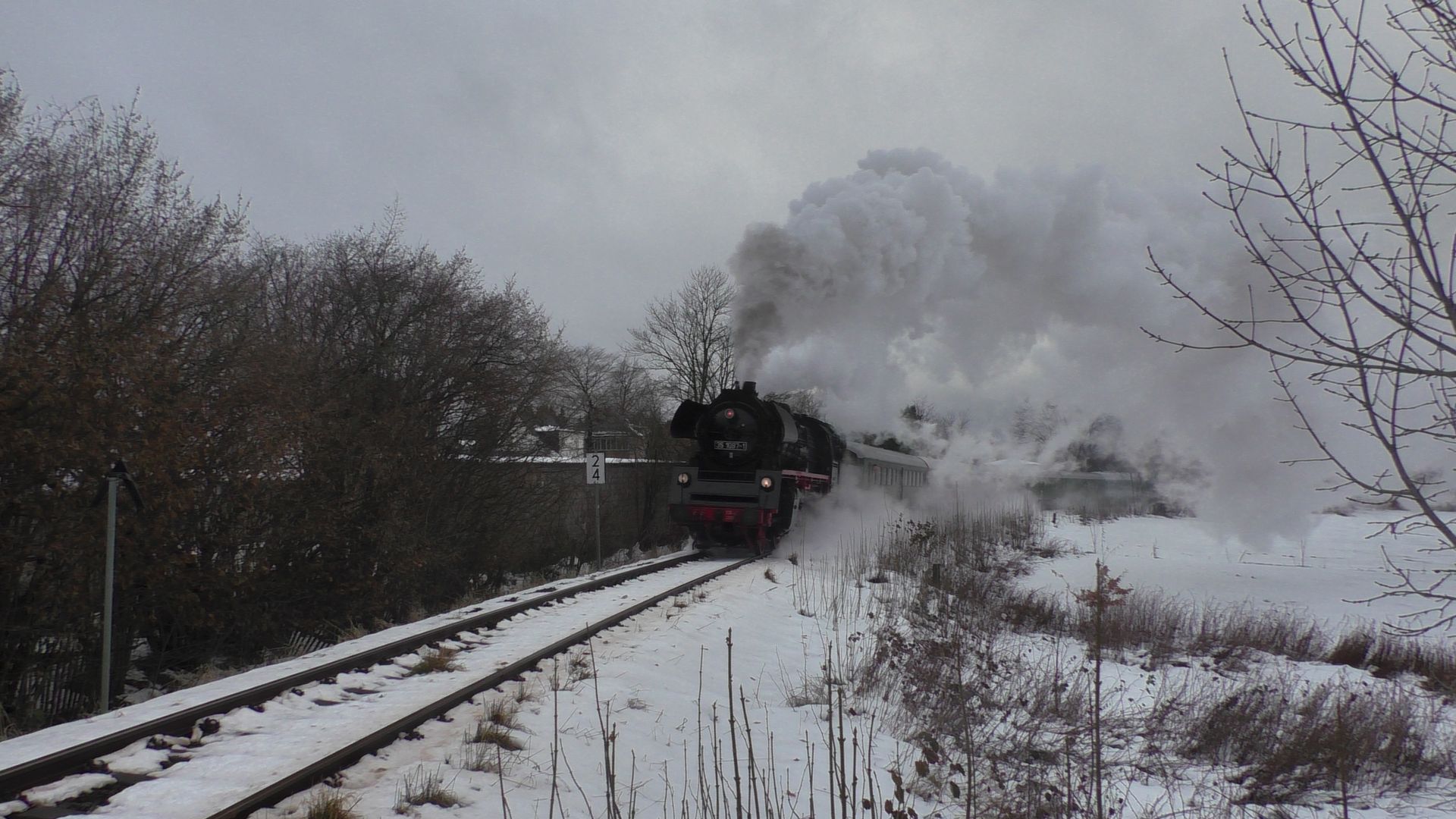 Am ersten Adventswochenden gehen traditionell die ganzen Dampfsonderzüge auf Nikolausfahrten. So fuhr gestern Nostalgiezugreisen mit der Schnellzugdampflok 012 104-6 (alias 01 1104) von Braunschweig nach Leipzig. In Leipzig gab es dann von Gleisglück Stadtrundfahrten mit der 52 8079 und E77.10. Am heutigen ersten Advent fuhr das Eisenbahnmuseum Leipzig Plagwitz mit ihrer 52 8154 die beliebten Pendelfahrten von Plagwitz nach Zeitz, welchen ich in Leipzig-Knautnaundorf bei frischem Neuschnee verewigt habe