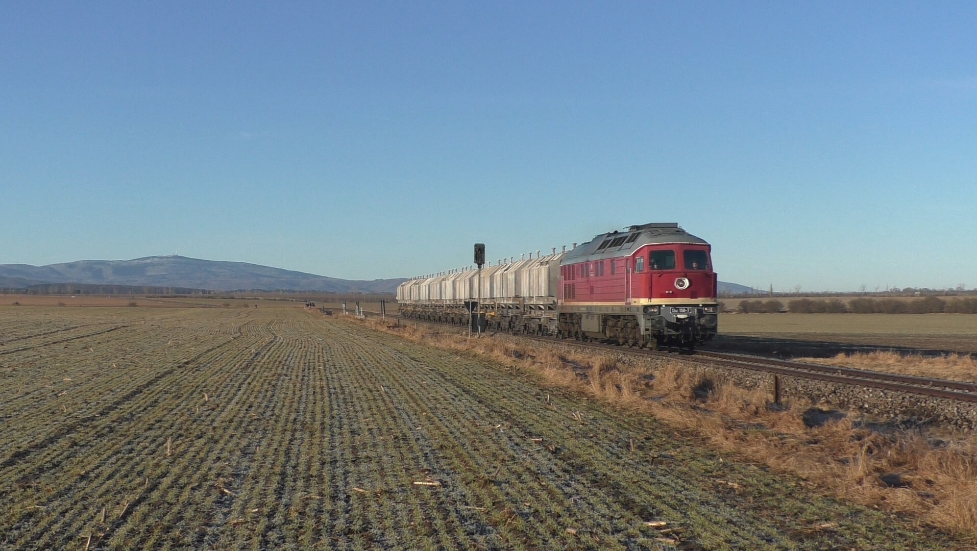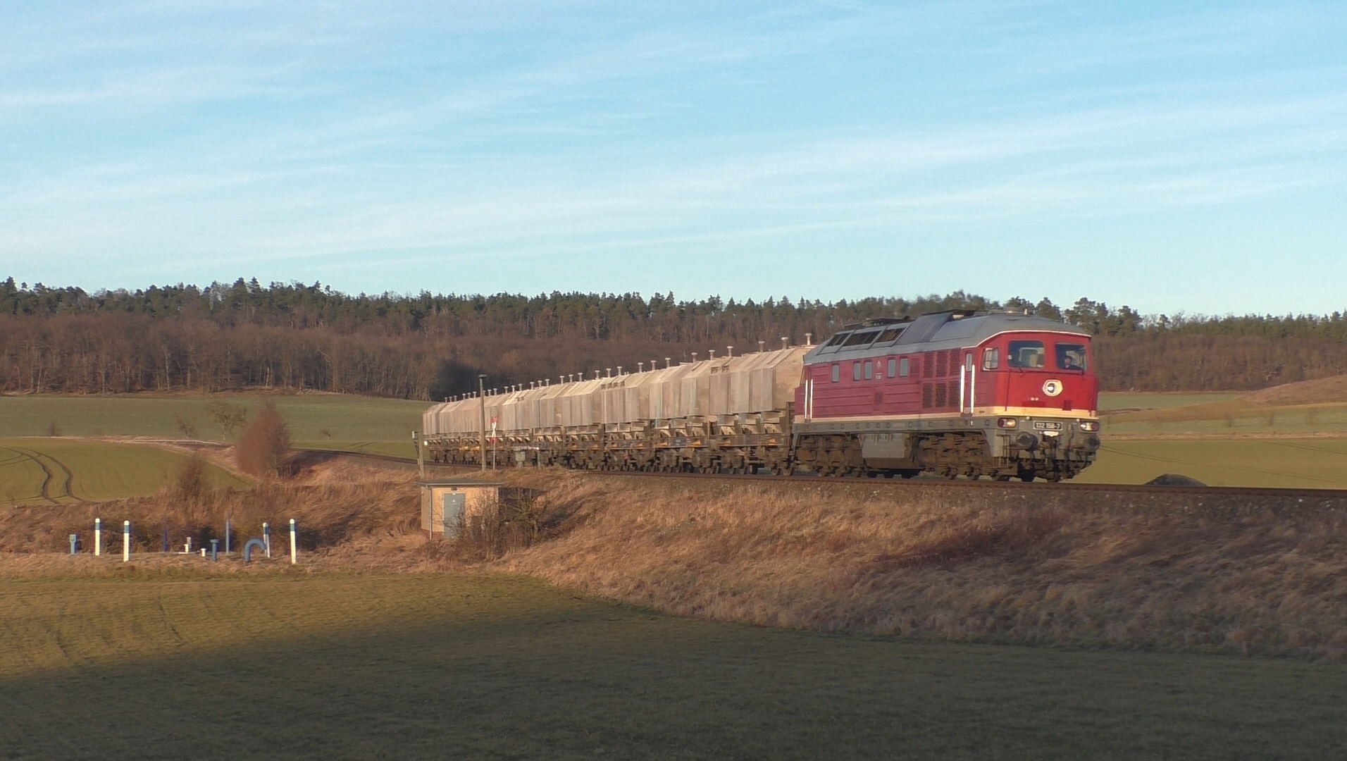 Heute konnte ich nach langem mal wieder mit der guten 132 158 fahren. Ursprünglich war 192 013 geplant welche nicht rechtzeitig in der Werkstatt fertig wurde, die daraus resultierende Ersatzlok in Form von 248 022 wurde auch schnell wieder verworfen, da die vermutlich eingefroren war und nicht funktionierte, so blieb dann nur noch die altbewährte sowjetische Technik über, welche bei jedem Wetter fährt und einen nicht im Stich lässt.