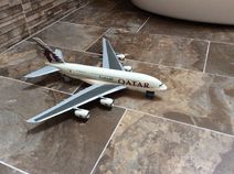Foto1: Das neuest Mitglied meiner Sammlung. A380 Qatar 1:144 (im Foto noch nicht ganz fertig)