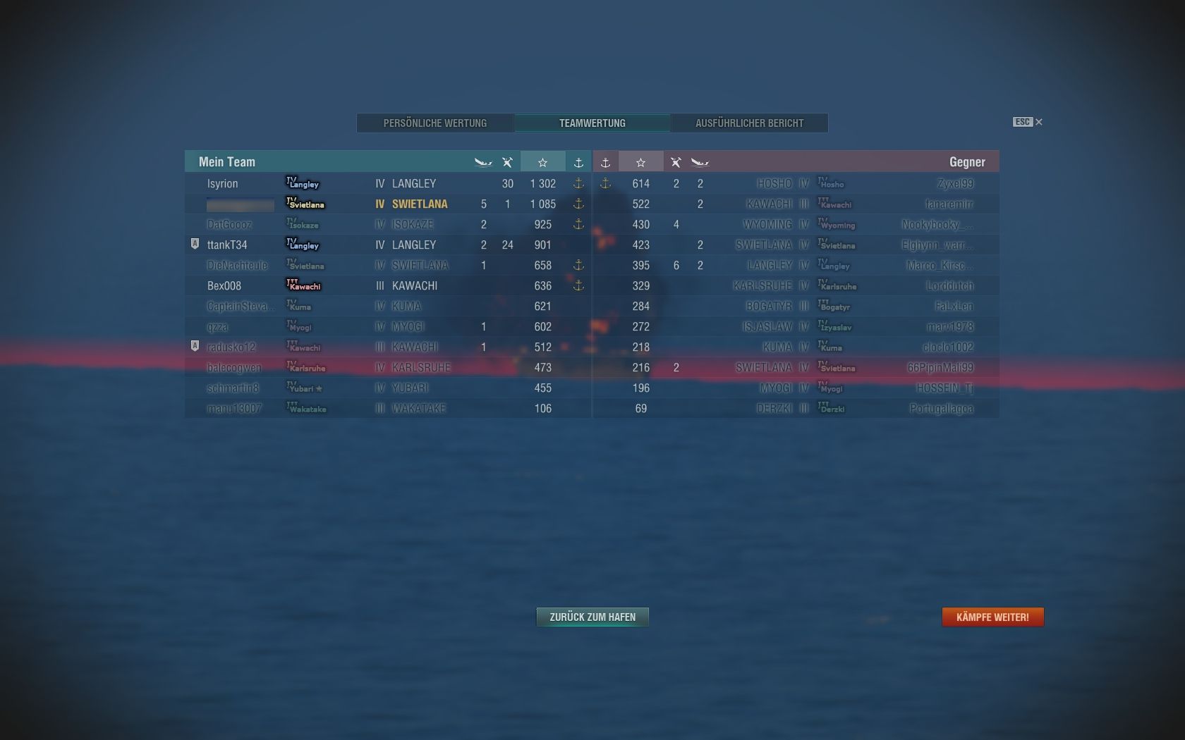 Hat sonst noch jemand das Bedürfnis, seine bisher gesammelten Erfahrungen dieser Schiffsklasse hier zu teilen? Ich würde mich brennend dafür interessieren, wie es euch bisher ergangen ist. Vielleicht hat es ja auch schon der ein oder andere etwas weiter als nur bis Tier IV gebracht.