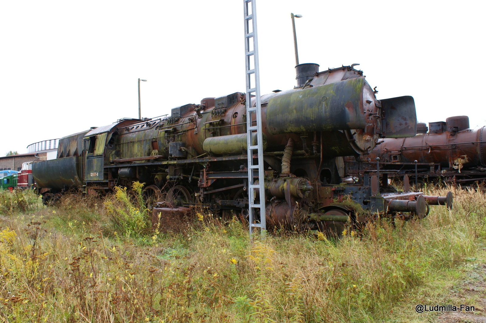 Schade ist es schon, aber es gammeln dort lediglich 52er und 50er aus der DDR, davon gibt es ja noch ein einige betriebsfähige. Interessanter sind eher die Bundesbahnschätze im Rundschuppen, darunter eine 78, sowie 50, 44 und 42. Diese stehen auch immerhin unter Dach, jedoch werden auch diese Loks wohl auf ewige Zeiten Standmodelle bleiben. Erfreut euch an dem was noch fährt, wer weiß wie lange das noch einer bezahlt und davon ab, Stahl bleibt auch nicht ewig jung!!
