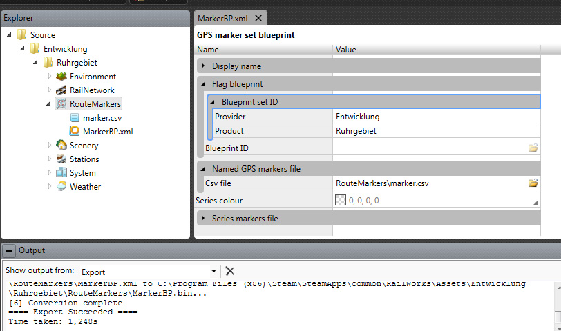 sodann EXPORT "GPS marker set bluepint.xml" --> Force Export to References (F7-Taste) - war auch erfolgreich: