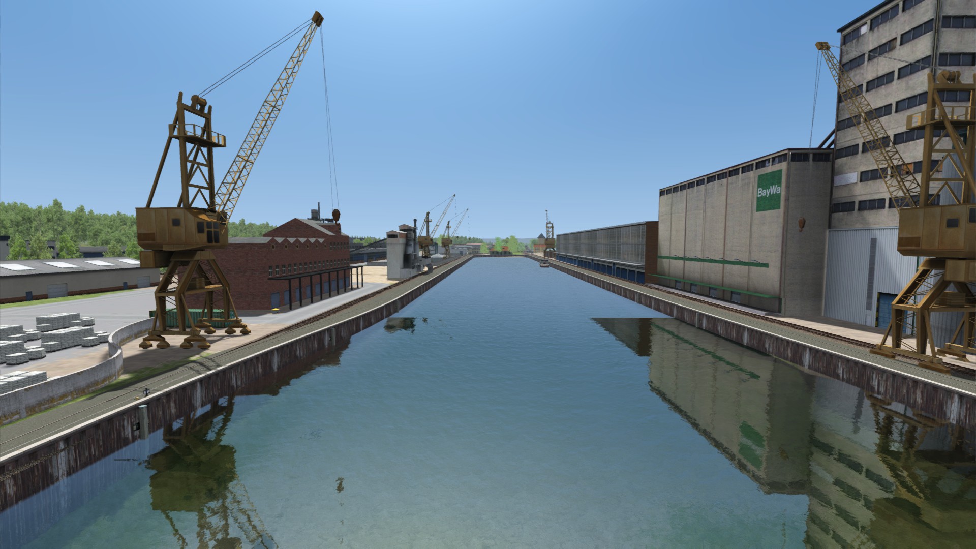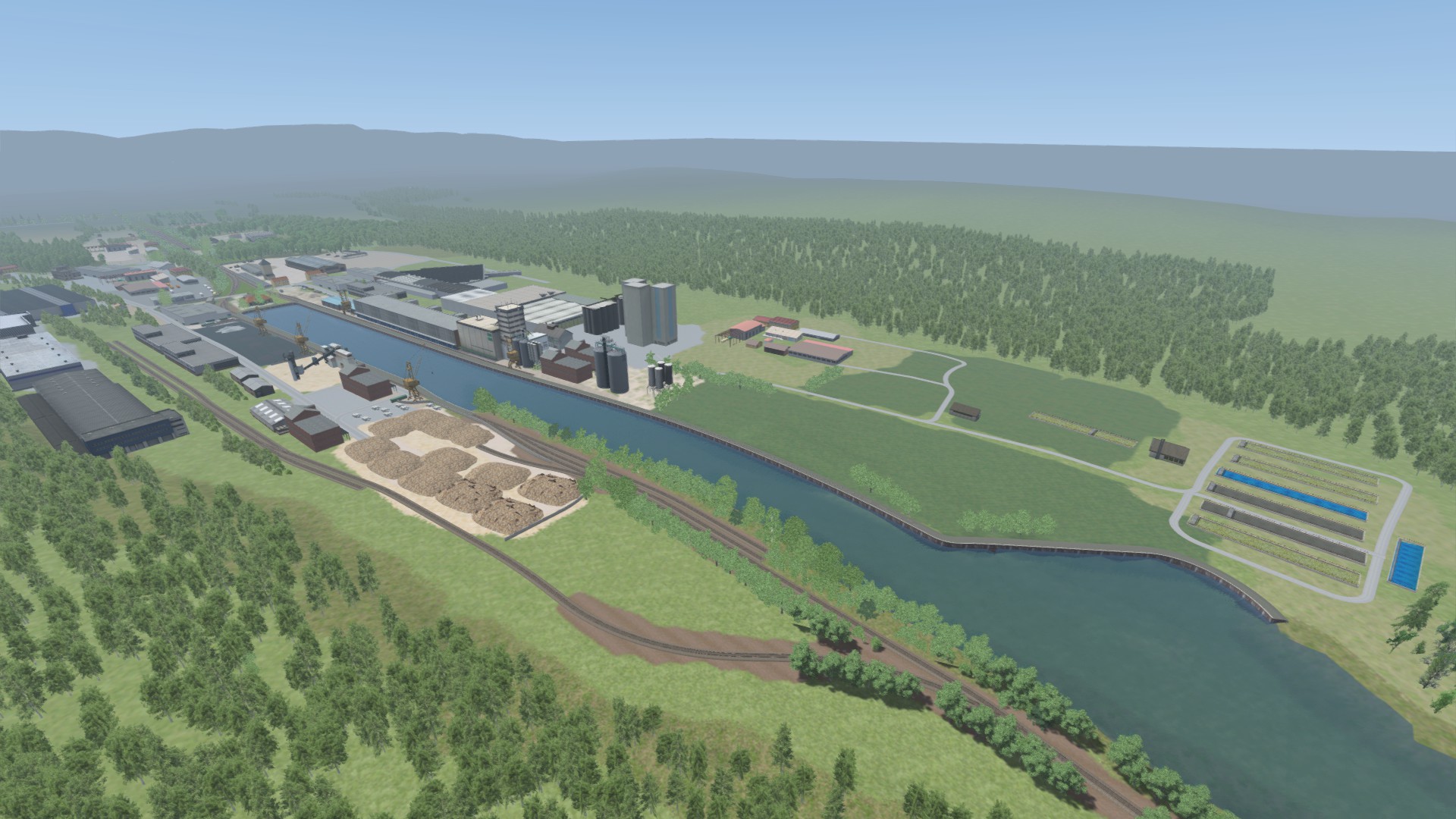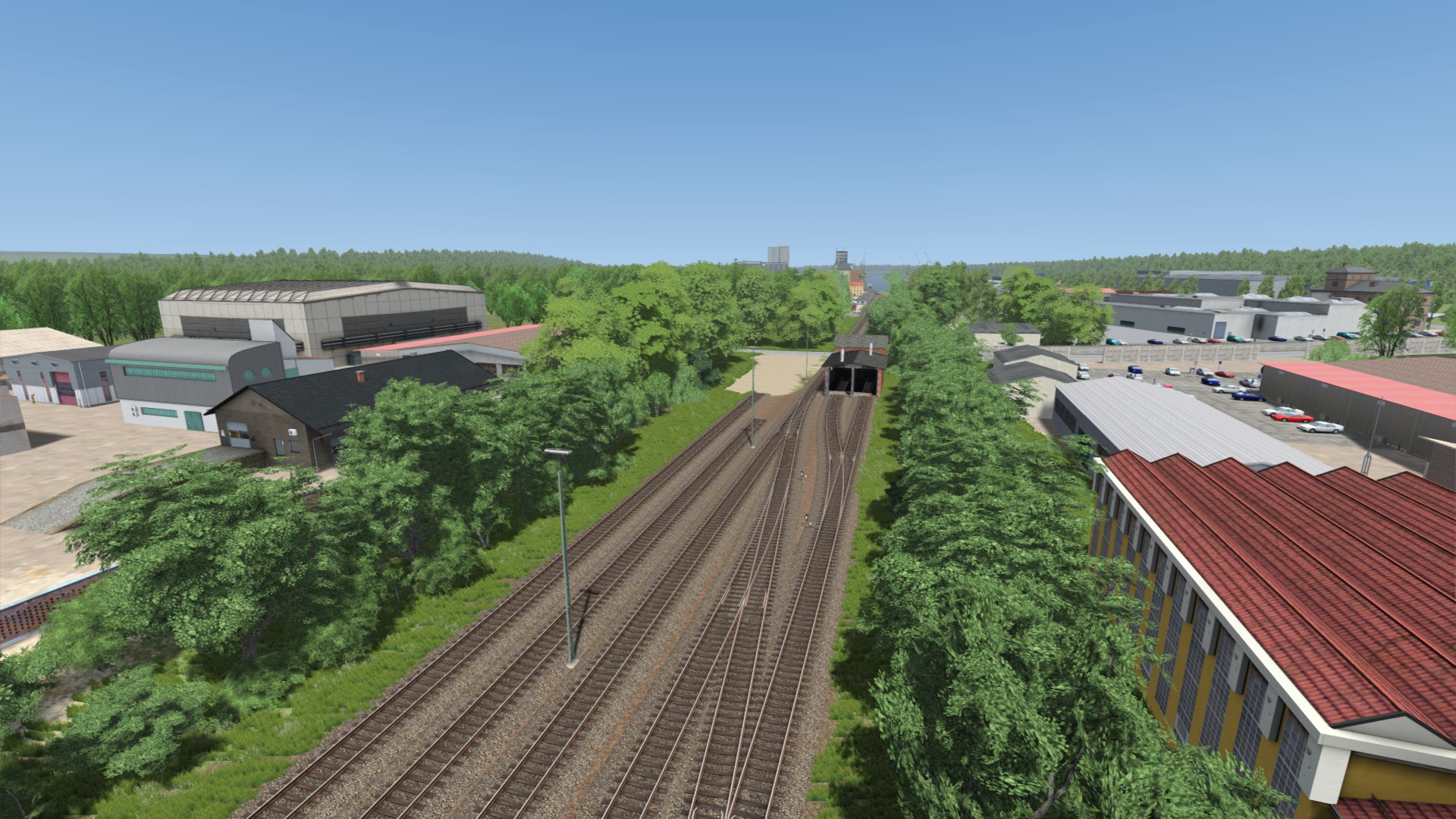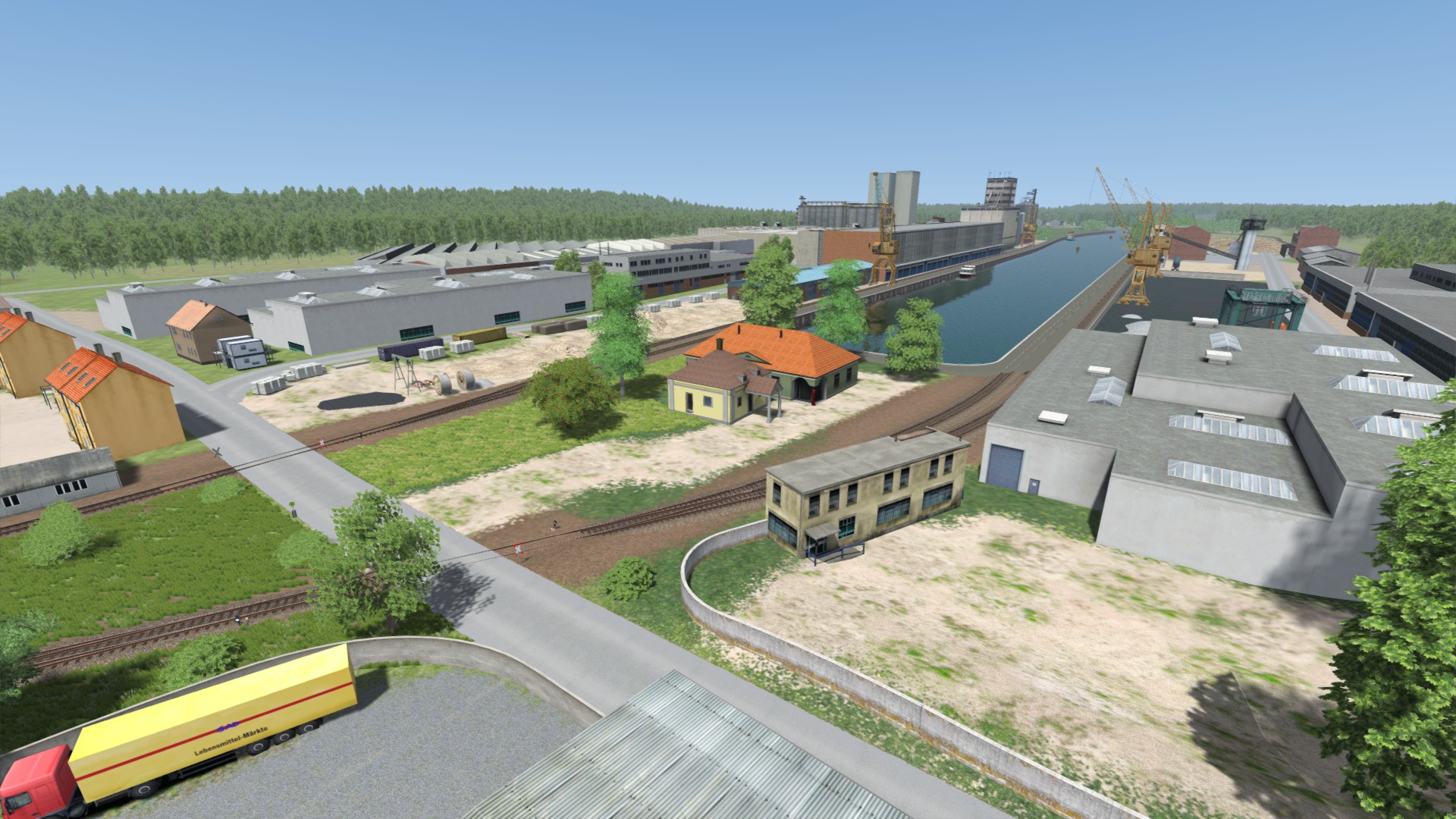 Die Anschlussbahn zum Hildesheimer Hafen ist dieses Wochenende auch fertig geworden. Für diesen Abschnitt wurden keine neuen Assets gebaut und ich erhebe auch keinen 100% Anspruch auf Realität auf diesem Abschnitt. Industriegebäude wurden teilweise locker flockig gesetzt, ohne minutenlang zu vergleichen, ob es aussieht wie in der Realität. Aber insgesamt erkennt man es gut wieder.
