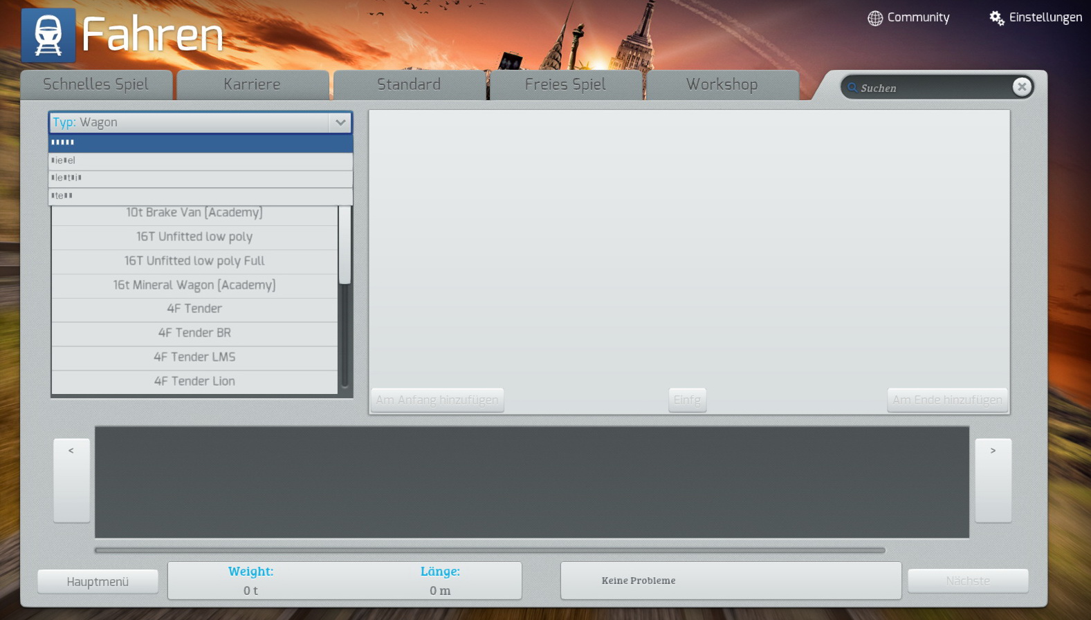 Wenn man unter schnelles Spiel/Benutzer eine eigene QD-Consist erstellen will, funktioniert beim Laden des Rollmaterials nur die Prozent-Fortschrittsanzeige, der Anzeigebalken aber nicht.