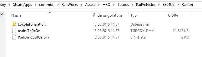 Hier gibts unter HRQ nur einen Produktordner: Taurus (Bild 1) - in diesem einen Produktordner gibt es etliche Repaints (eben die aus dem HRQ-Grundpaket, Bild 2) - ein paar dieser Repaints benutzen den Reskin-Blueprint. Zum Beispiel das Railion-Repaint: typisch für solche Reskin-Blueprint-Repaints (Bild 3) : es gibt im wesentlichen nur den Reskin-Blueprint und die Textur-Datei, aber keine der Dateien der Basis-Lok. Dieses Reskin-Blueprint Repaint wird im Consist-Editor des TS nicht angezeigt, aber im Blueprint-Editor kann man problemlos funktionsfähige QD-Consists damit bauen.